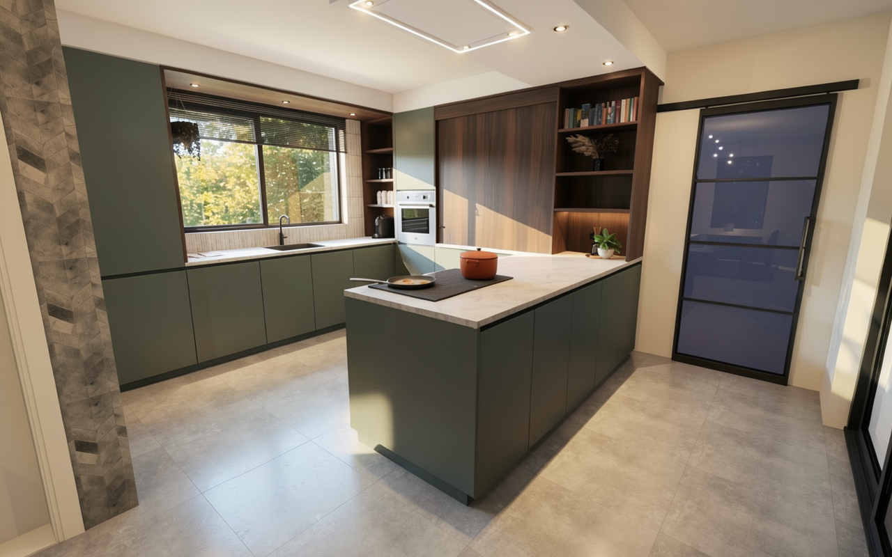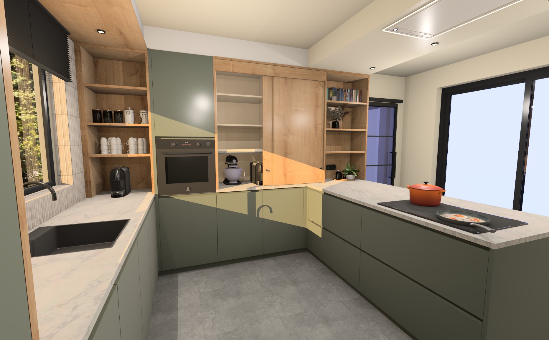make the lighting sharper and more realistic don t add any new light sources don t change the colour of the cabinets or the worktop