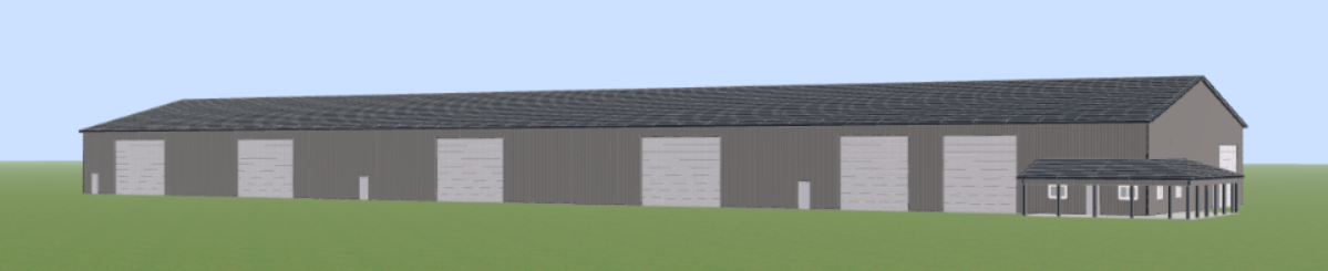 make building look real in a sunny landscape with a mowed yard and concrete driveway