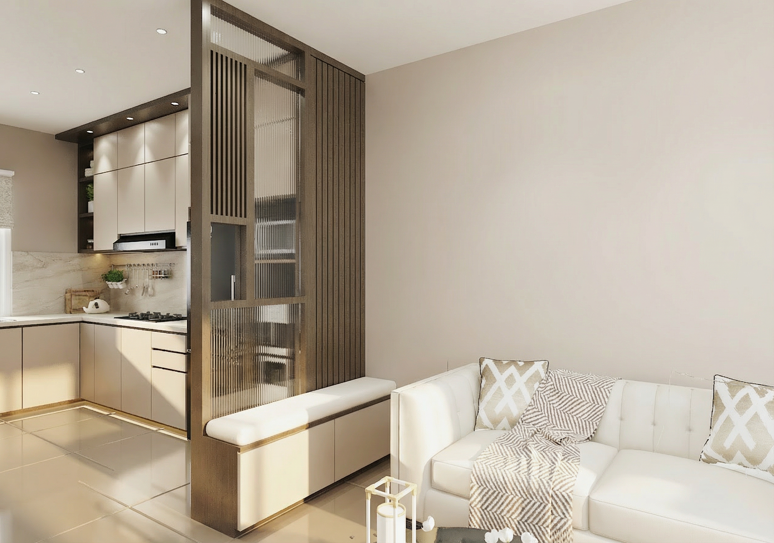 generate a photo realistic rendering based on the image keep 100 resemblance enhance lighting effect add minimal accessories architecture