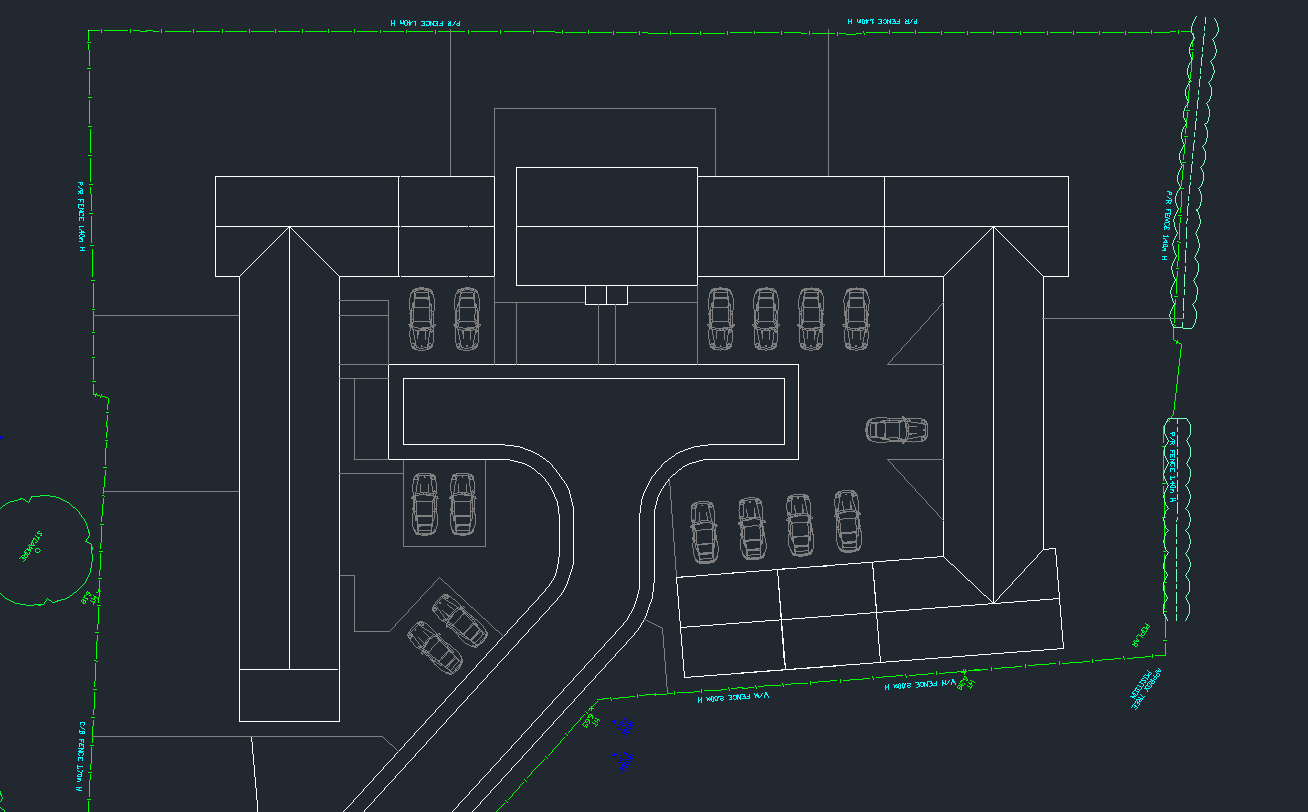 artistic watercolour site layout grey road rustic red roof tiles rustic red sidewalk rustic red driveway slabs green grass to gardens with landscaping and tree s bushes etc