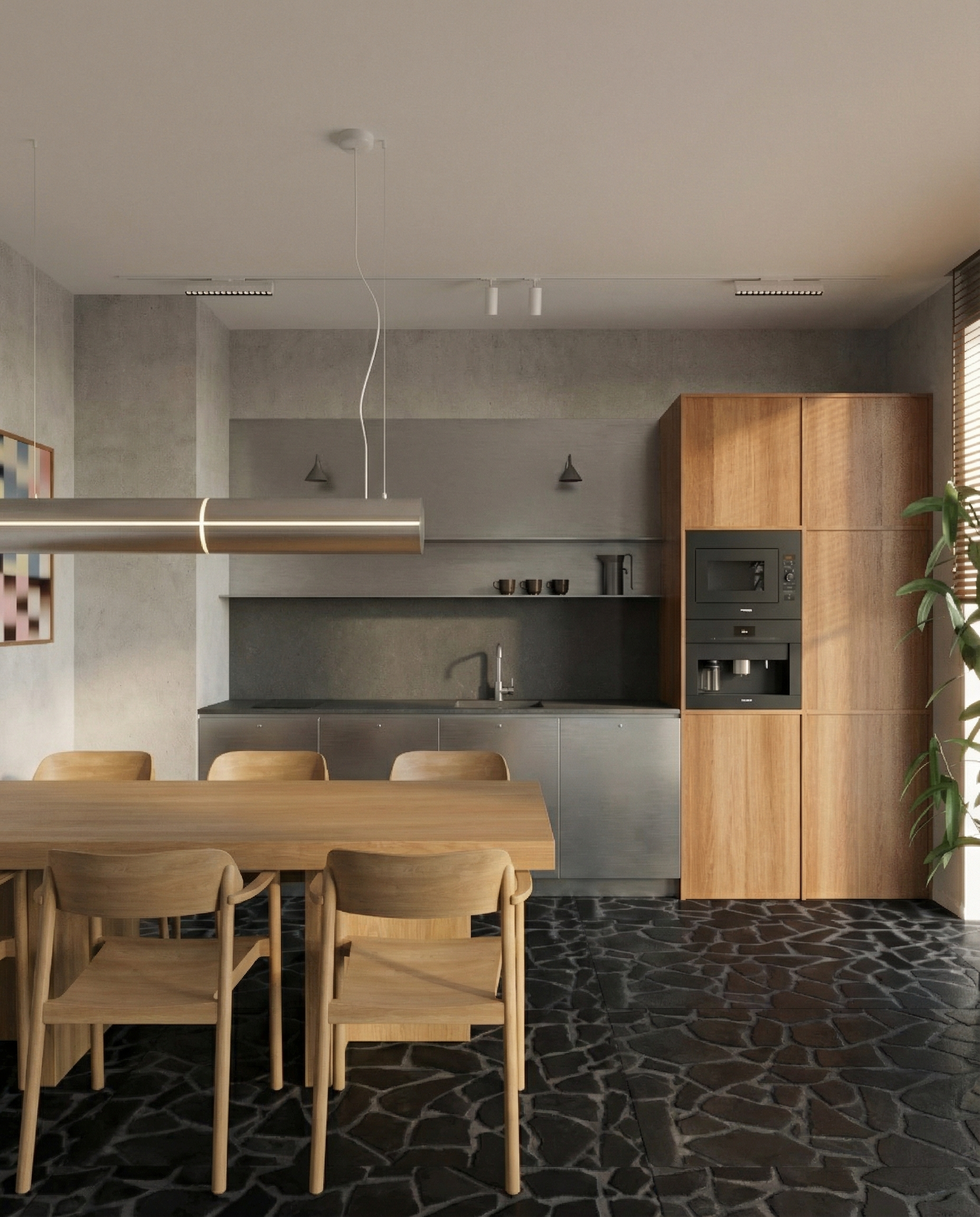recreate this image to an ultra realistic photo of a zen master bathroom include natural sunlight pouring in from the window on the other side of the room keep the colors exactly as they are add a darker grout on the hexagon floor tile
