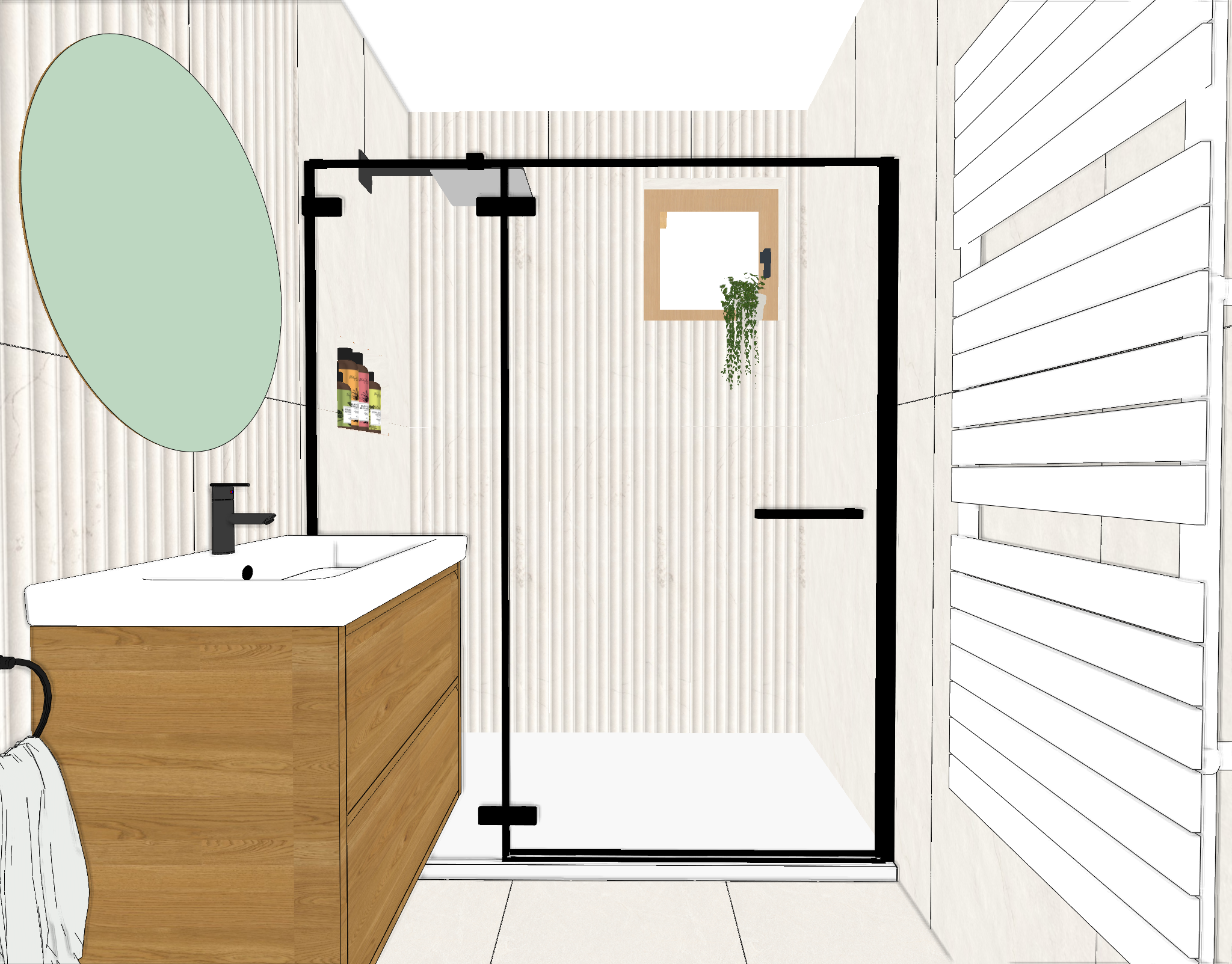 keep tile pattern and color unchanged add solid led to the mirror do not change the materials and colors of the sketch