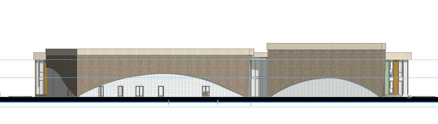 create a modern facade for an art school without changing the shape with wooden elements in the middle with glass without landscape with white plaster under the wooden cladding
