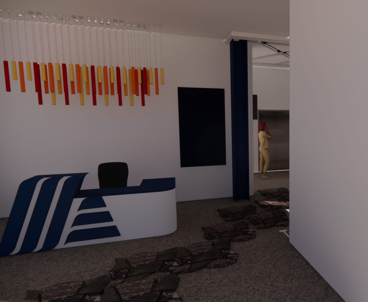 add natural lighting and interior artificial lighting from the chandelier make the floor around the stones smooth concrete