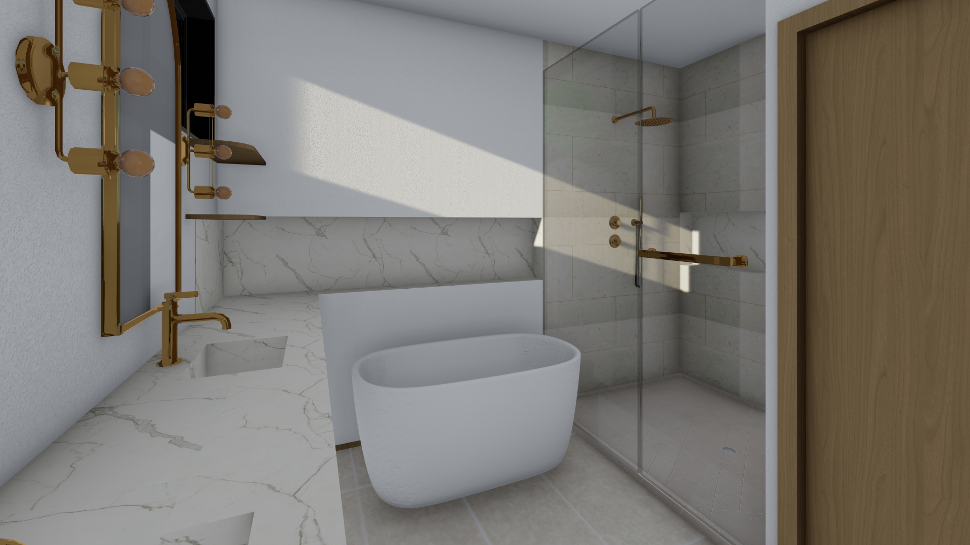 use this strategy to render not can light in shower add light in niche add bottle in niche this is good run rendering from different angle show light from window