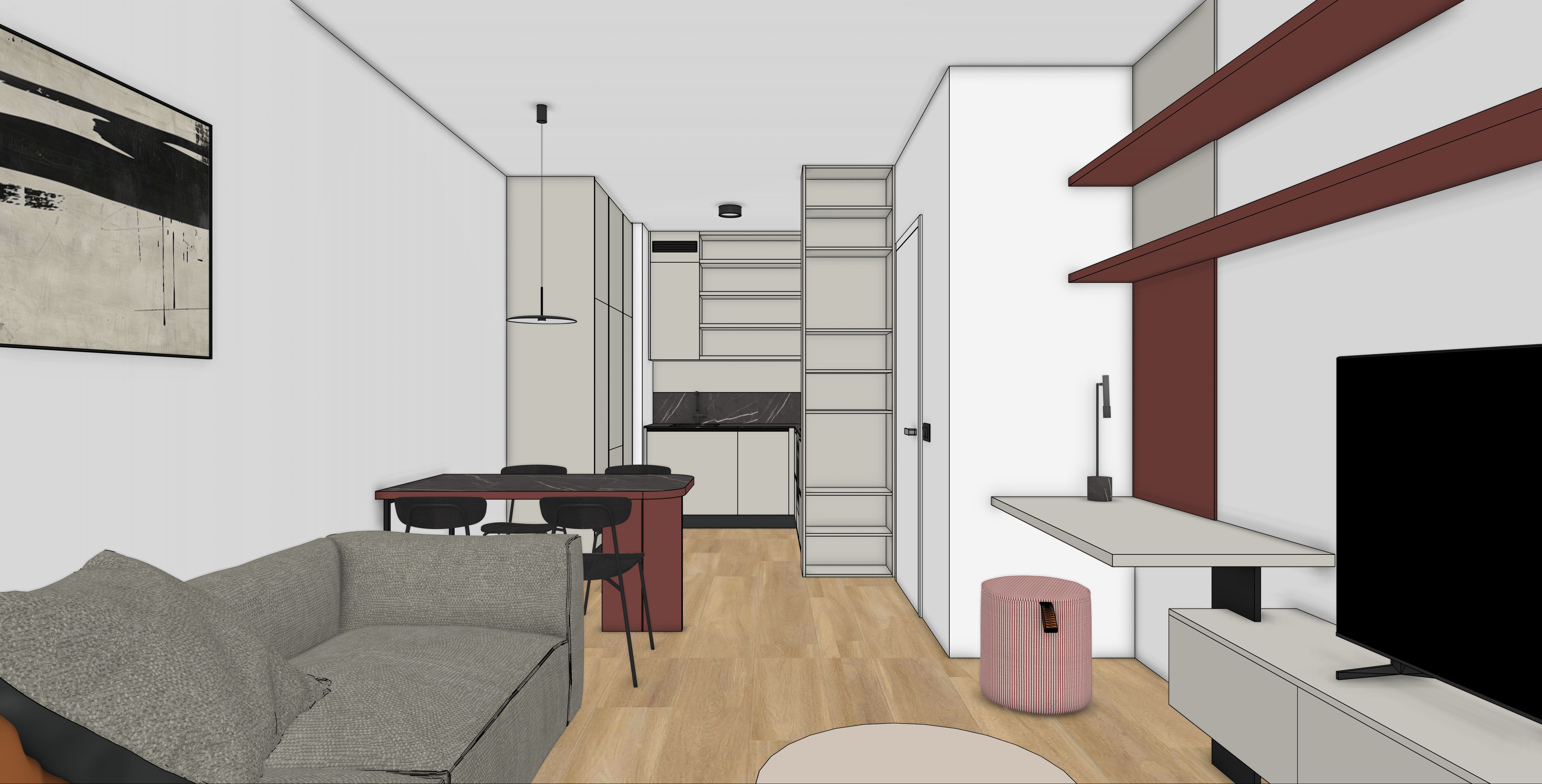 modern minimalist interior matt finishes daylight with soft shadows