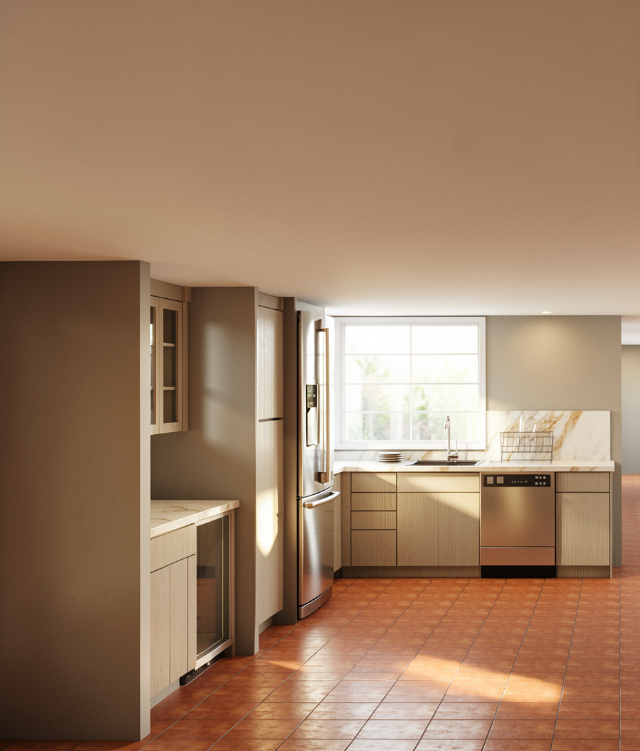 use the uploaded sketchup model as the exact architectural reference architecture do not modify the architecture geometry proportions or layout all buildings pavilion windows walls and columns must remain exactly as in the model material preservation keep all materials exactly as in the original model do not reinterpret textures important the stepping stone tiles in the garden must remain rectangular concrete slabs exactly as in the model do not change their shape color texture or spacing do not change the grass do not change the kiosk material do not modify fa ade materials glass or wood elements signage keep the exact typography and text on the fa ade biblioteca gustavo gili do not modify the font or material of the sign lighting bright sunny mediterranean daylight barcelona atmosphere clear blue sky warm sunlight soft realistic shadows from trees and umbrellas environment no new buildings or city skyline in the background only sky and soft vegetation reflections people add 5 7 people in the courtyard examples people reading books someone working on a laptop two people having a conversation someone walking calmly people must sit only at existing tables do not add new furniture render style photorealistic architectural visualization soft global illumination natural shadows architectural photography style people must look like real photographic people not ai generated characters natural relaxed poses people interacting naturally subtle gestures while reading or talking realistic clothing folds natural skin tones slight motion in body posture architectural photography style people no posed characters add subtle background life small groups of people reading and talking naturally people should feel incidental like captured in a photograph