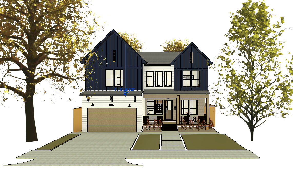 exterior shot on a warm sunny day greyish blue board and batten off white hardie siding