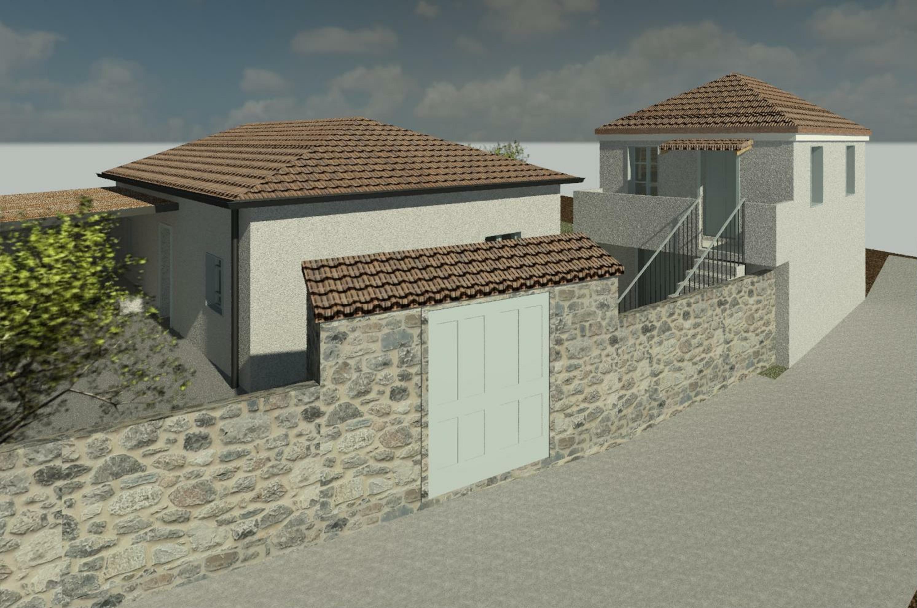 make it more realistic with a background of a village with small houses make the stone wall with more mortar