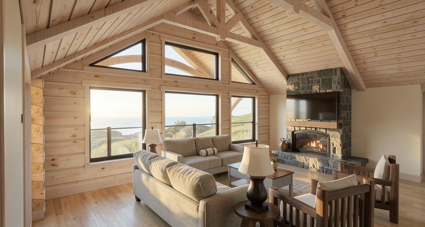 make this picture look photorealistic add minimal interior objects to table tops this is not a water facing property