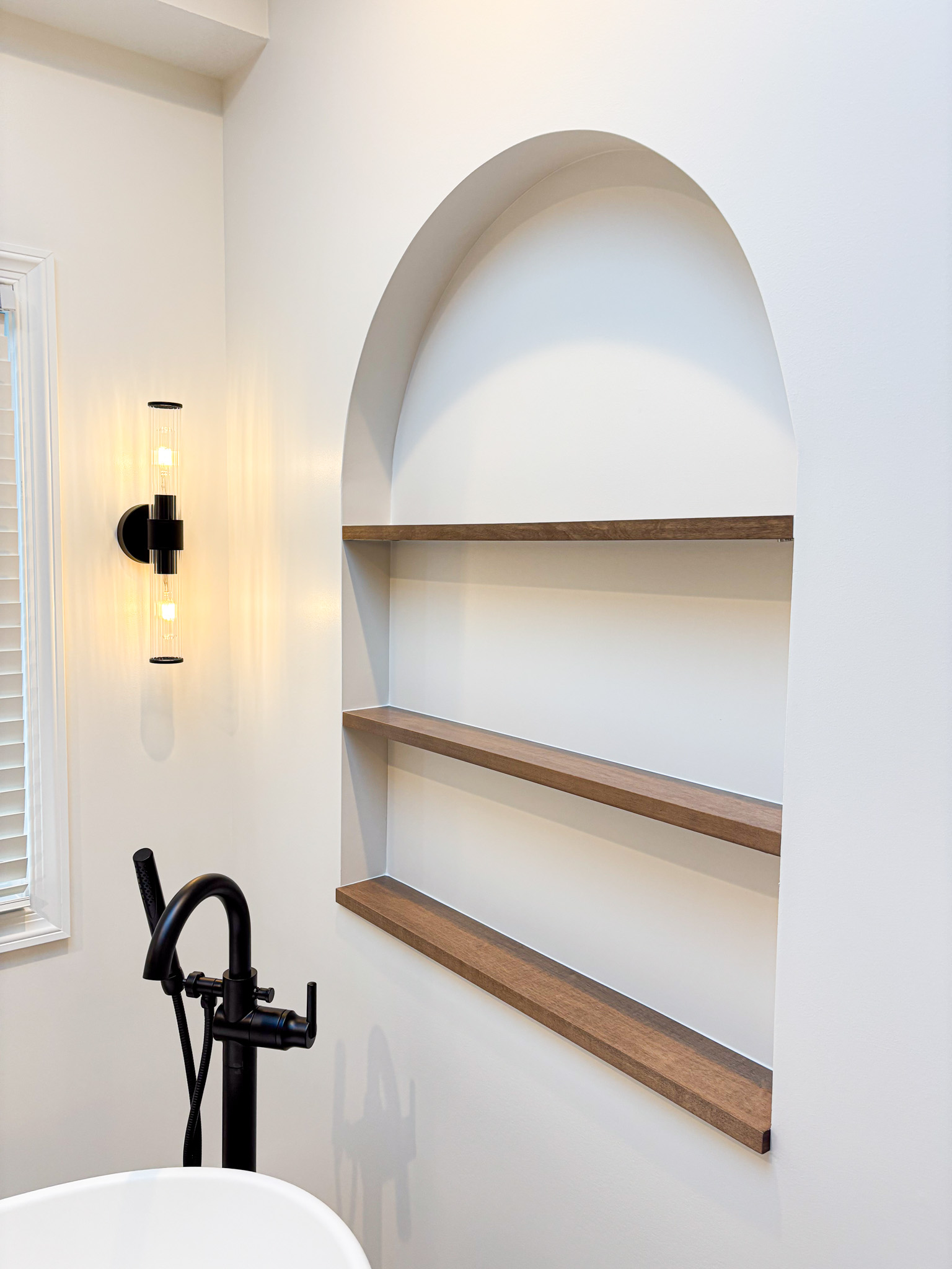 add items to shelves soap small bath towels a candle etc