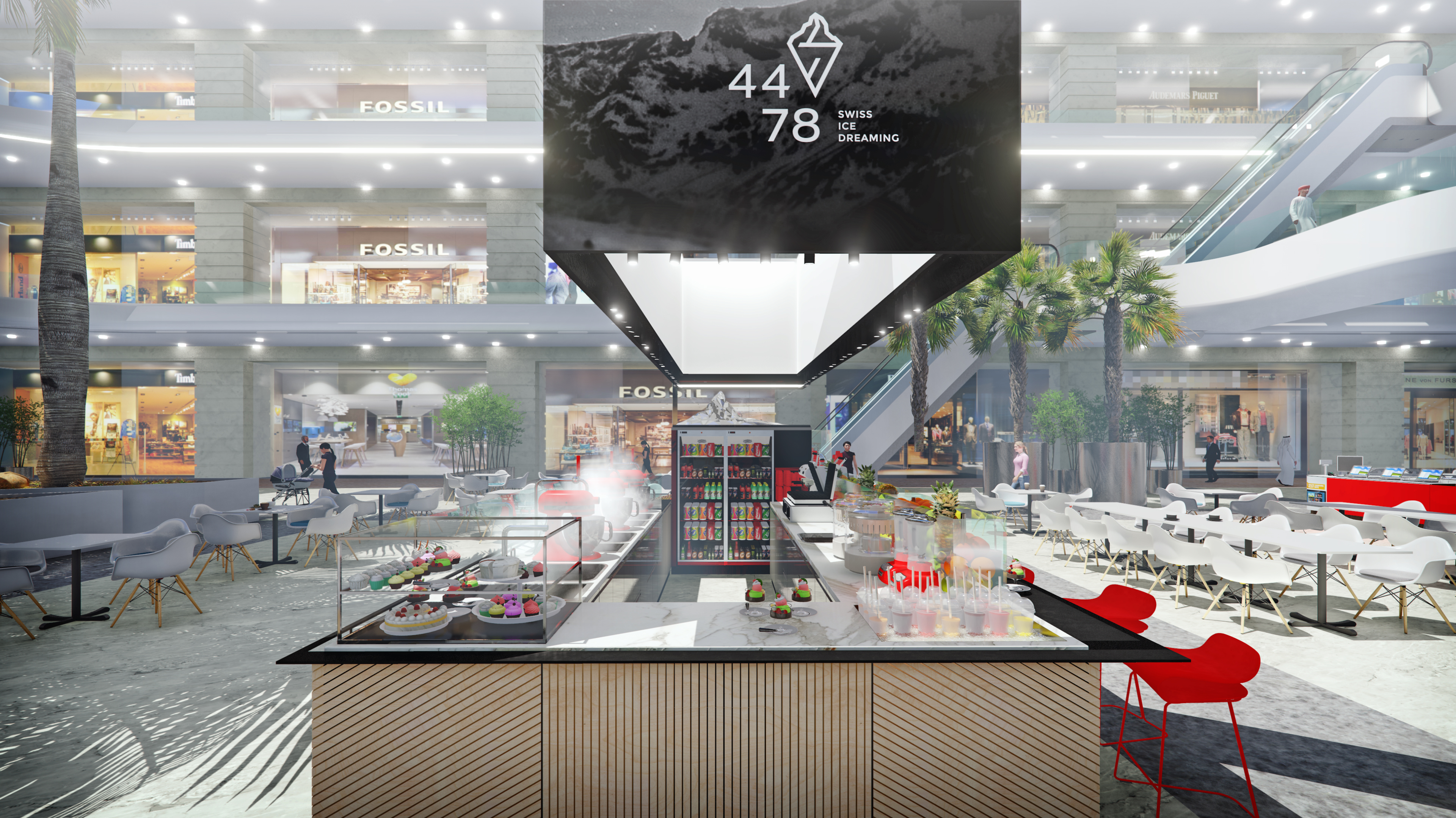 important preserve the existing geometry and the existing context exactly as provided do not modify alter reinterpret add remove scale or reshape any geometry do not change the site surroundings street layout neighboring buildings vegetation or context elements do not modify geometry scale proportions buildings road layout sidewalks or surrounding context in any way do not modify text interior retail lighting strong and natural warm strong exterior lighting noon sunny sky realistic light falloff photorealistic architectural rendering clean and balanced contrast calm cinematic mood style contemporary dubai minimalist premium understated