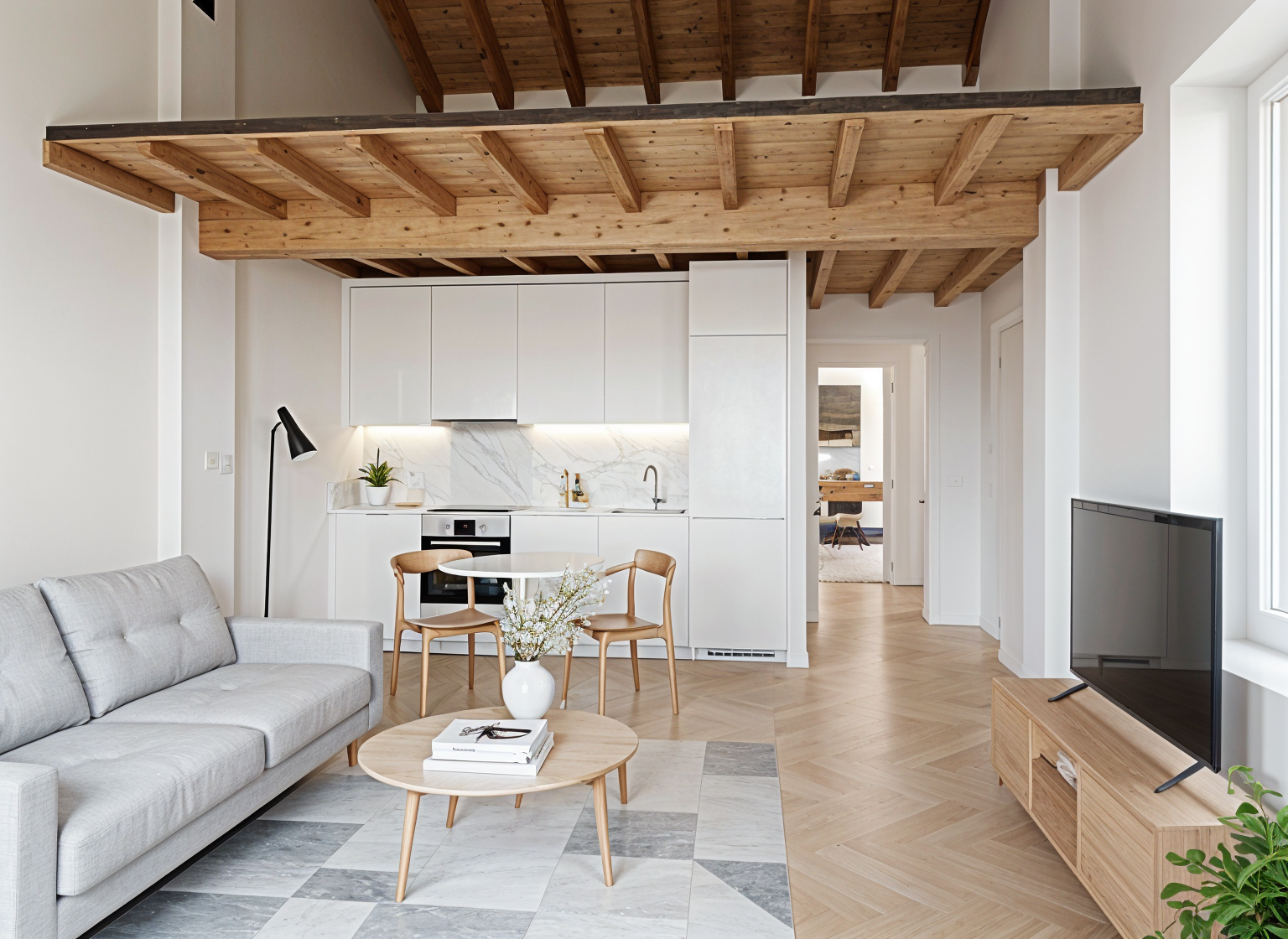 a manicured lawn layered flower beds low maintenance shrubs mature trees behind the pavillion house is in a neighborhood with a close neightbor behind them fireplace under pavillion white windows