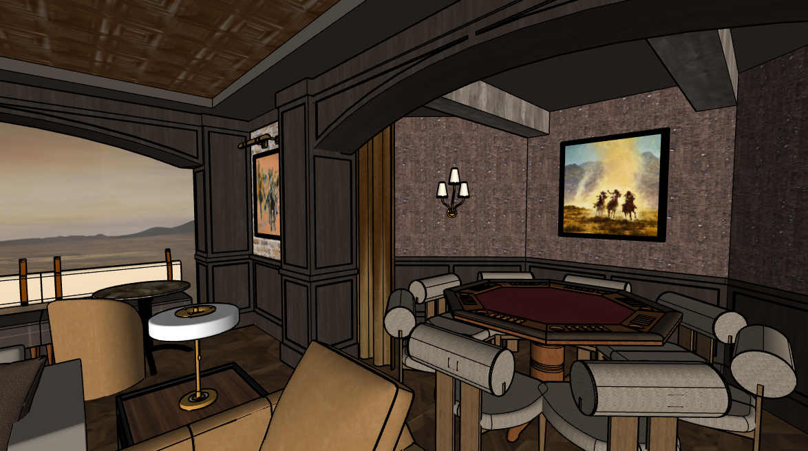 create a warm cozy rendering of this space keeping colors and all materials as is