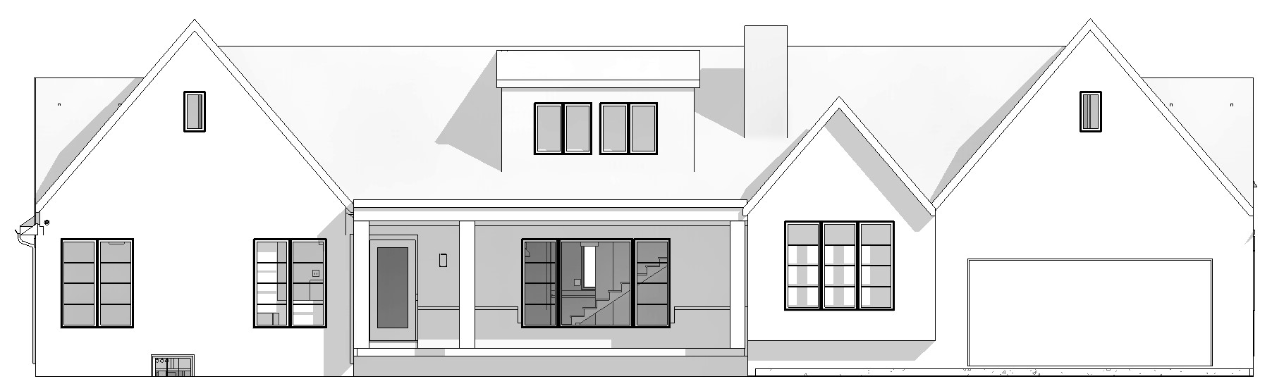 exterior elevation modern transitional house with white stucco light windows light wood accents and charcoal shingle roof add subtle midwest landsapce