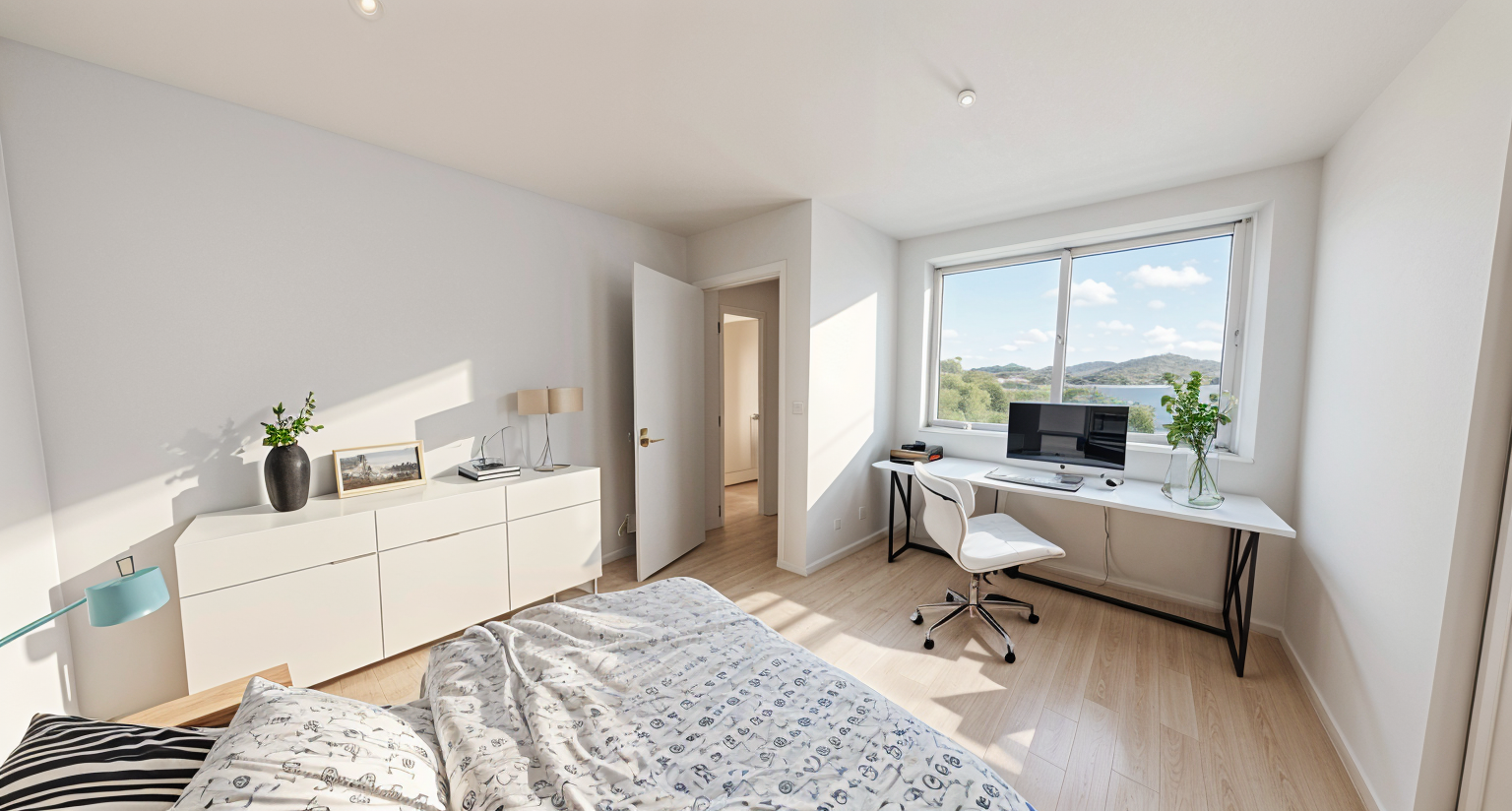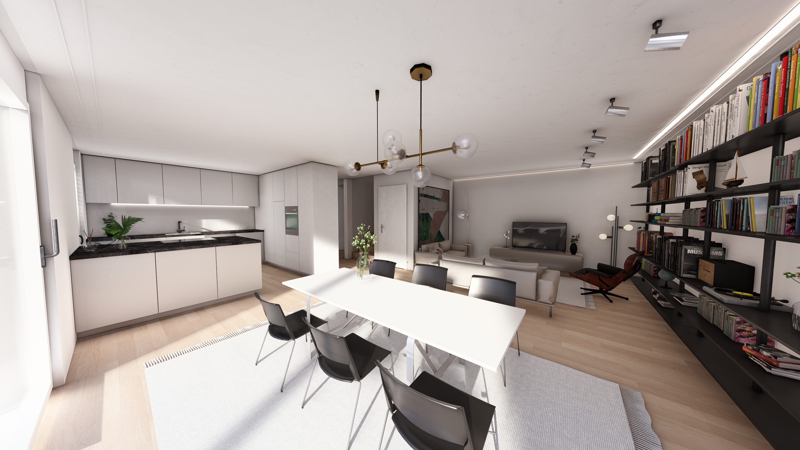 a modern livingrrom the room is bright and welcoming in front of the window there are curtains