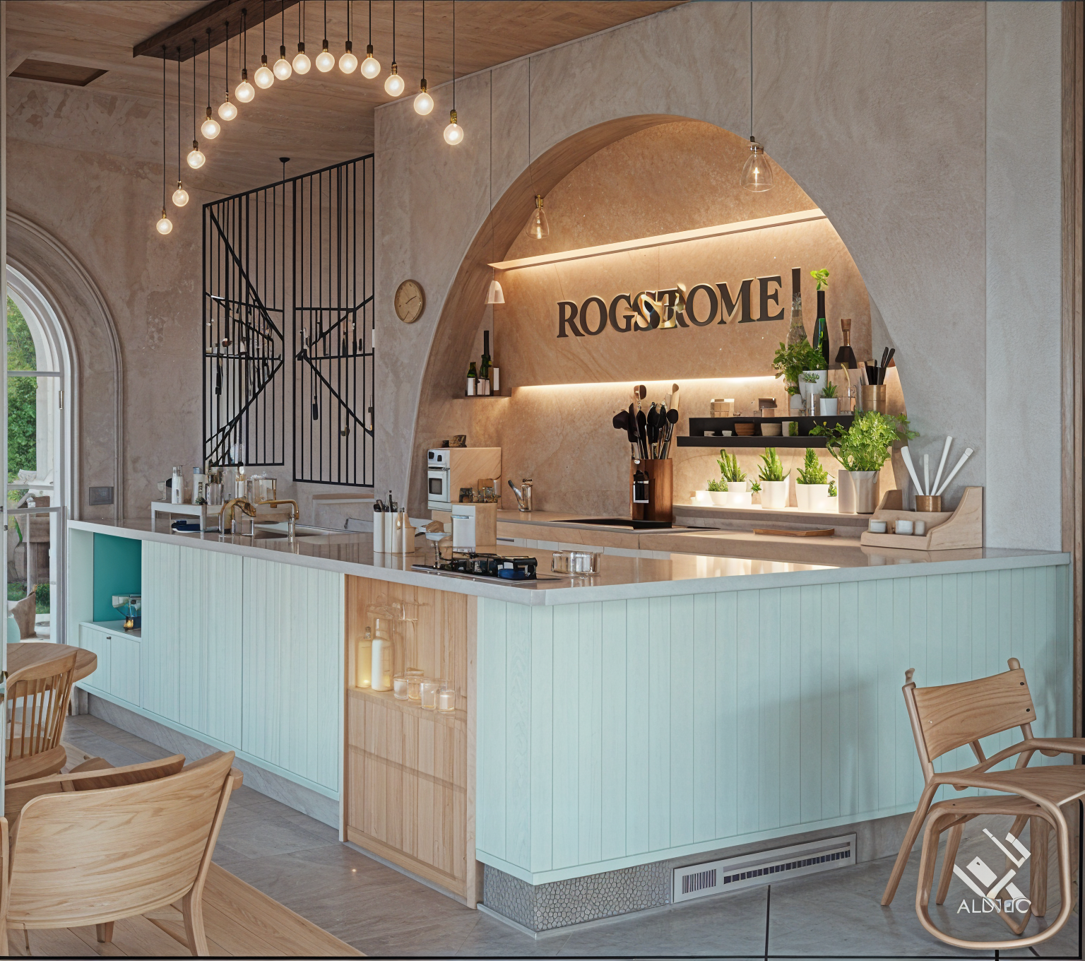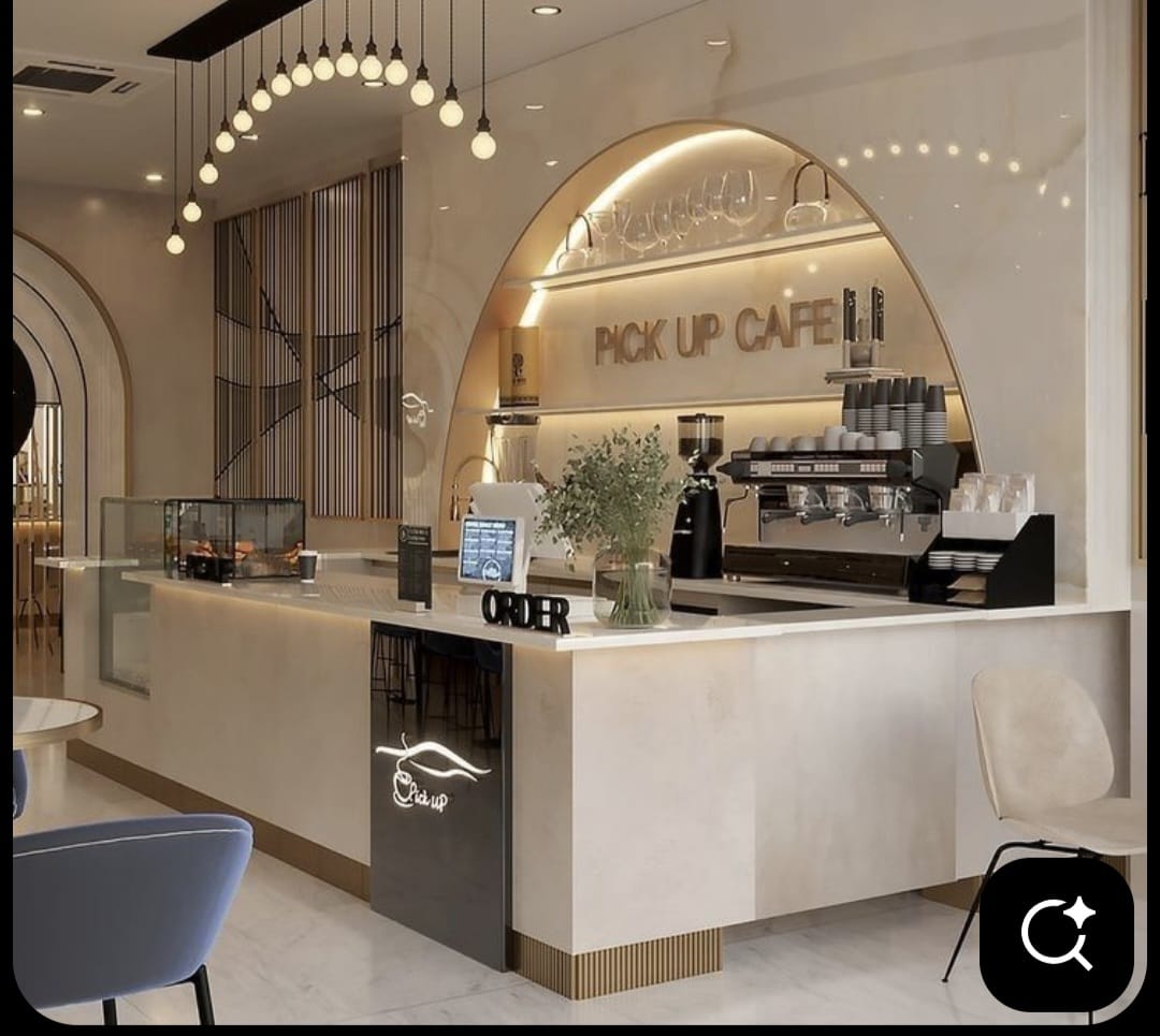 turn this into an island bar for a coffee shop make it coasy add seating area by the bar light color girly design architecture