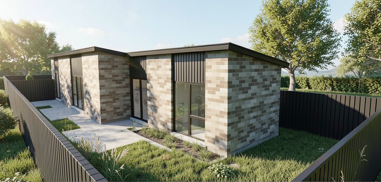brutalism exterior shot using the attached image provide alternitave cladding options architecture