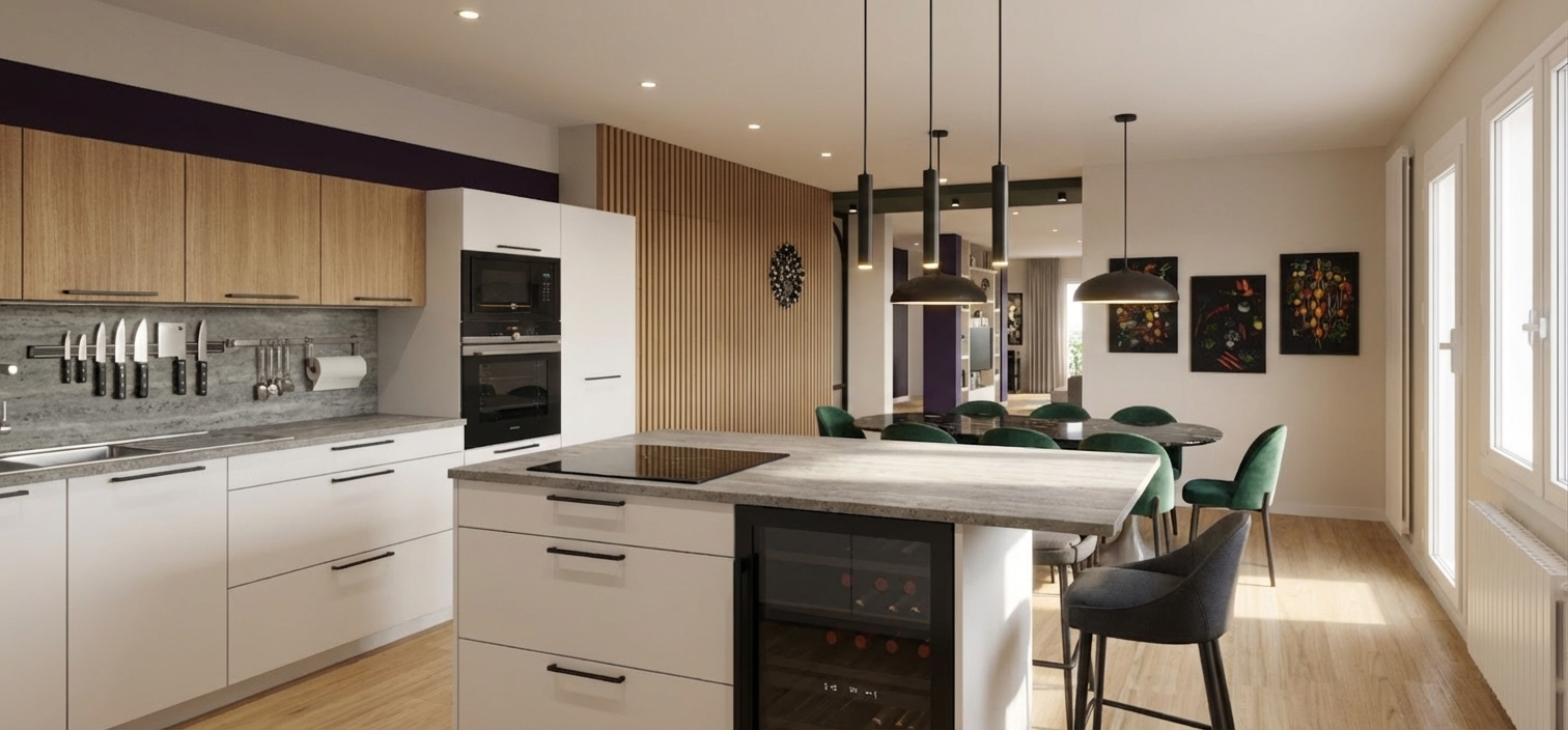 inserisci carta da parati coloratissima anni 70 nelle pareti chiare inserisci arredo sul lato sinistro lasciano libero il passaggio con arredamento per studentato coloratissimo con divani modulari