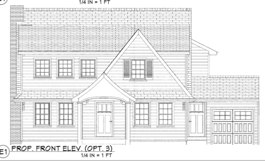 exterior shot cape cod gray siding with white windows and white exterior trim with a weathered wood color roof