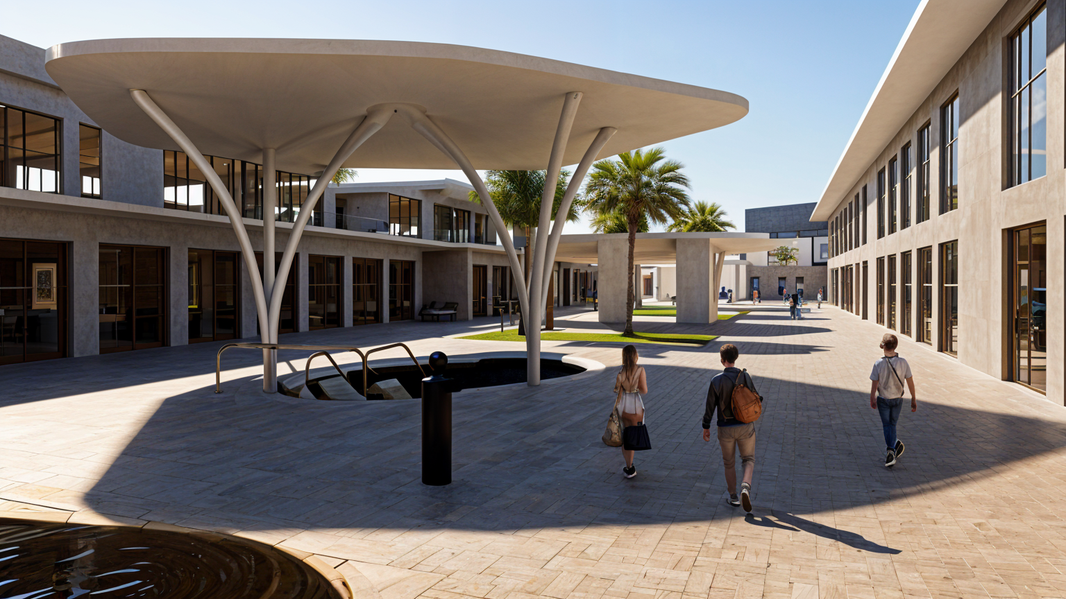 a manicured lawn layered flower beds low maintenance shrubs mature trees behind the pavillion