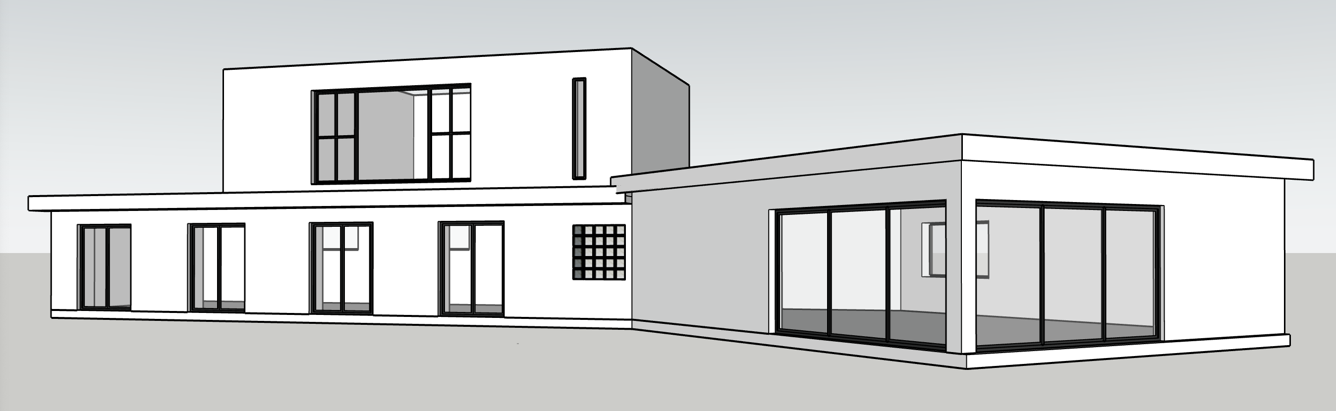 voici le fichier d une maison en blanc tu peux modifier les aspects de facade les toitures les rythmes ce qui ne doit pas bouger ce sont les ouvertures inspires toi de https www cas architecten be residential