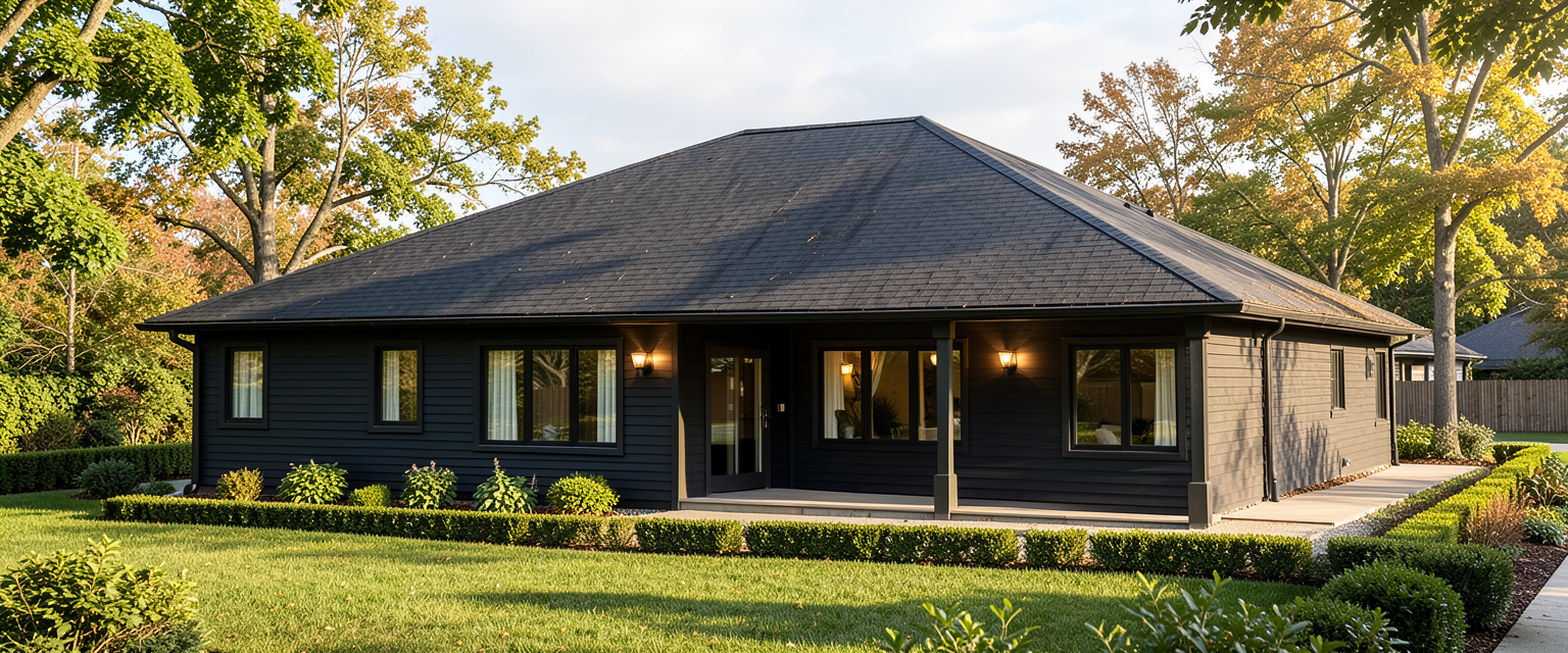 create a photorealistic rendering of this industrial building turned modern office building complete with landscaping and a bright mid day sky with clouds add a couple people for a human touch a nicely landscaped parking area is in the foreground