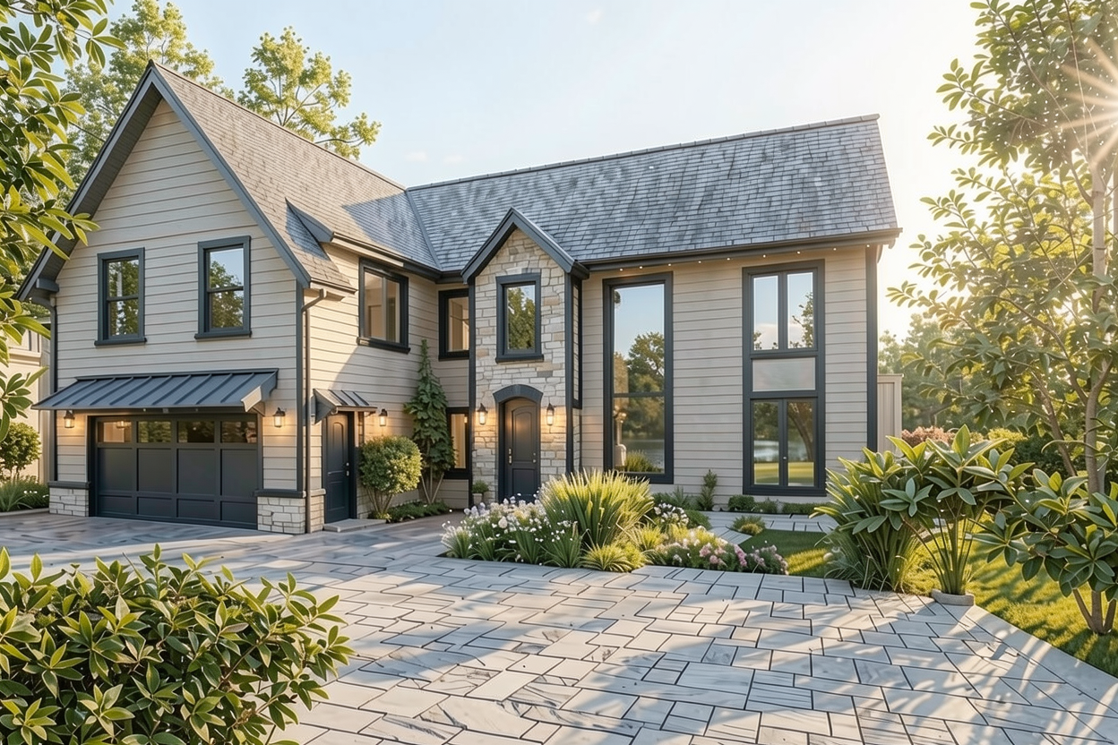 please keep this illustrated style but improve upon it also can exposed rafter tails be added at the overhangs to the left and right of the front porch
