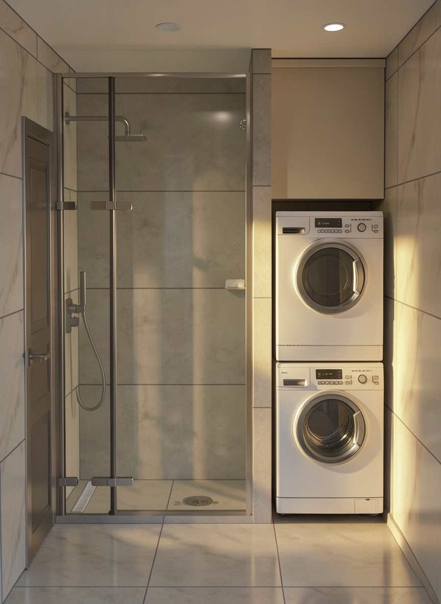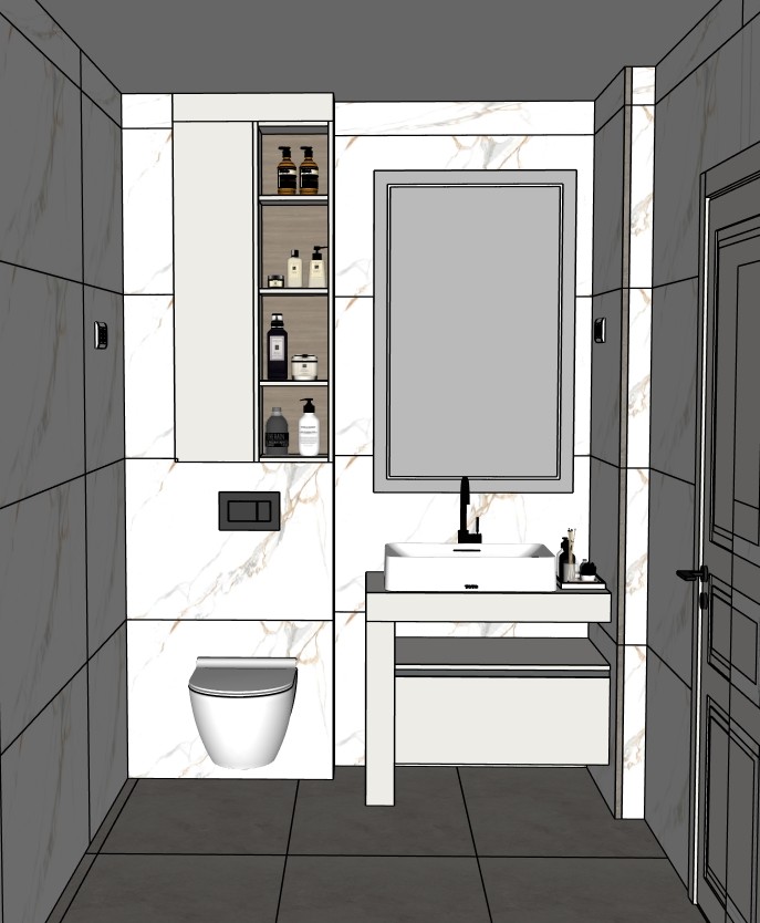 keep textures color and materials faucet is black also metal on shower door are beige only artificial lighting make photo realistic under the sink is mirror