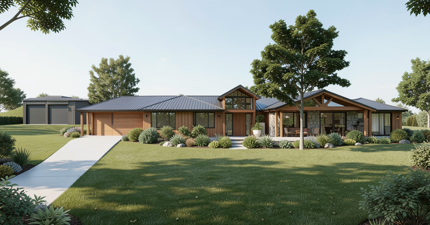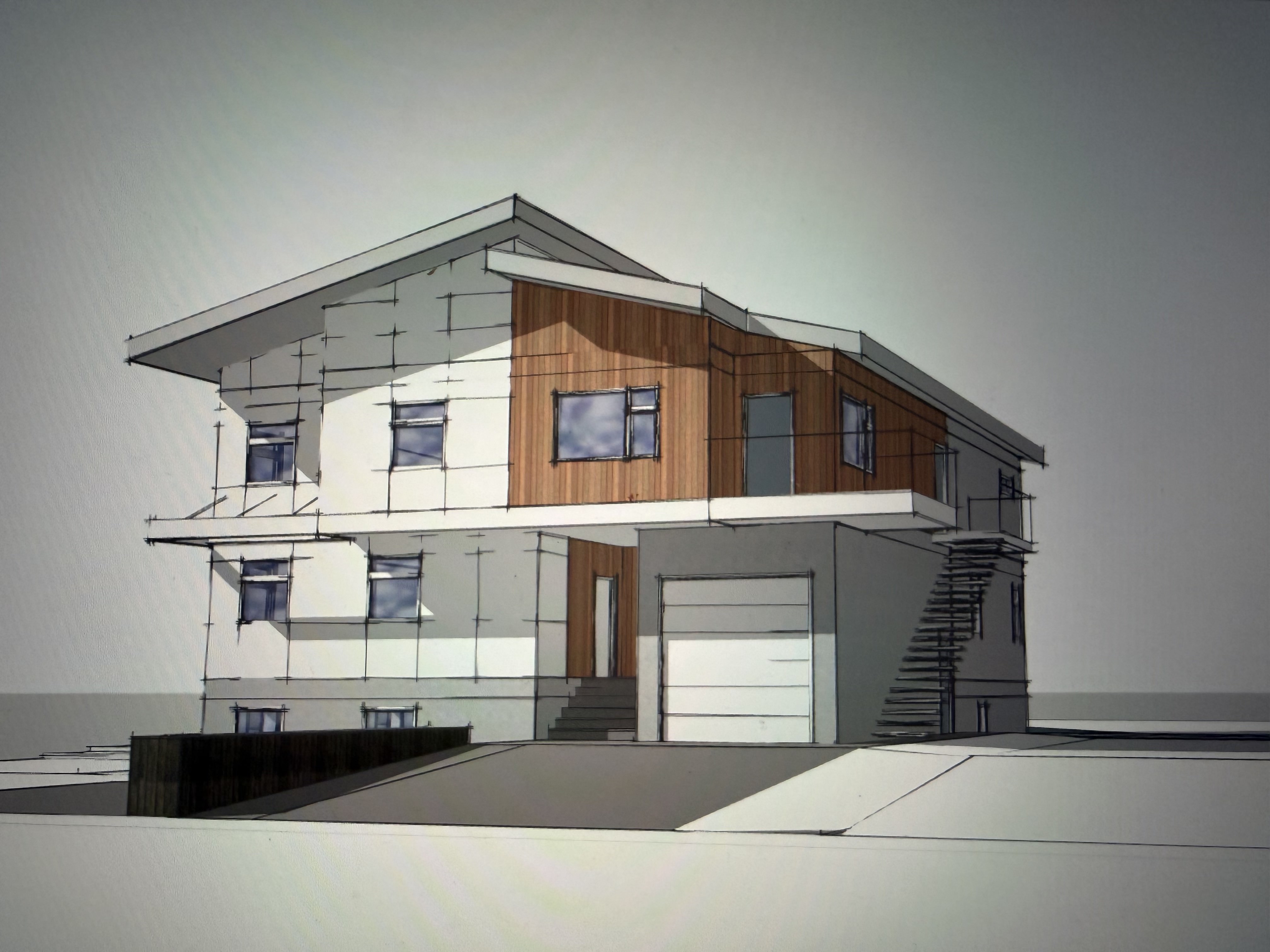 modernist exterior shot add realism and texture to this duplex in yellowknife nt finish the siding and roofing there should be a stair case up to the side door on the second floor on the right side of the building architecture