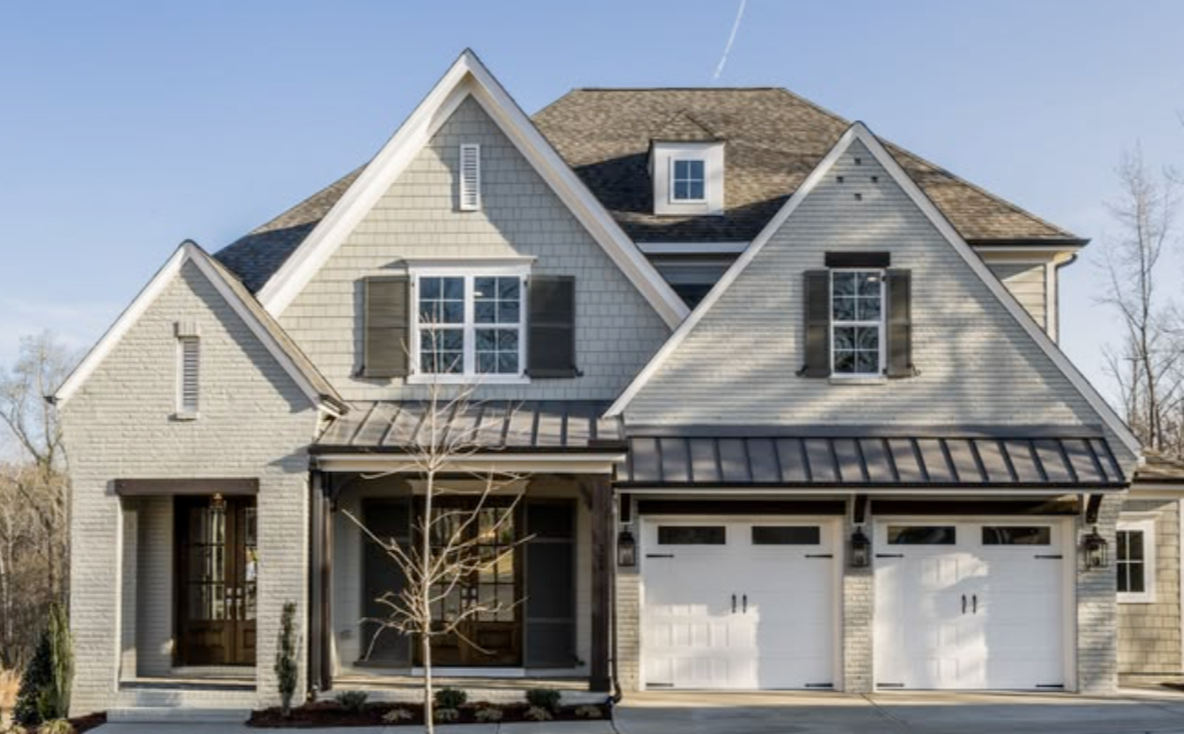 add arched garage doors and arch at front porch