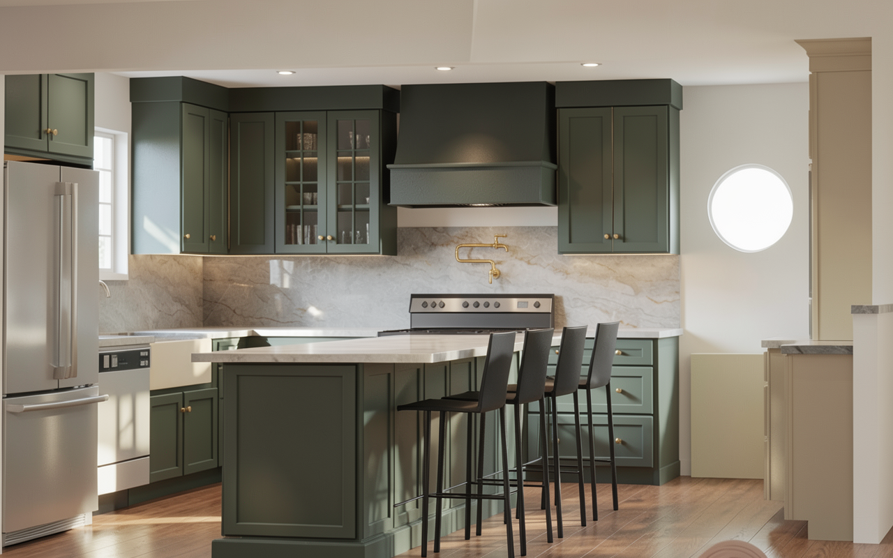 keep everything the same do not change layout or material only remove the part of the oven that is on the backsplash render this into a photo realistic rendering