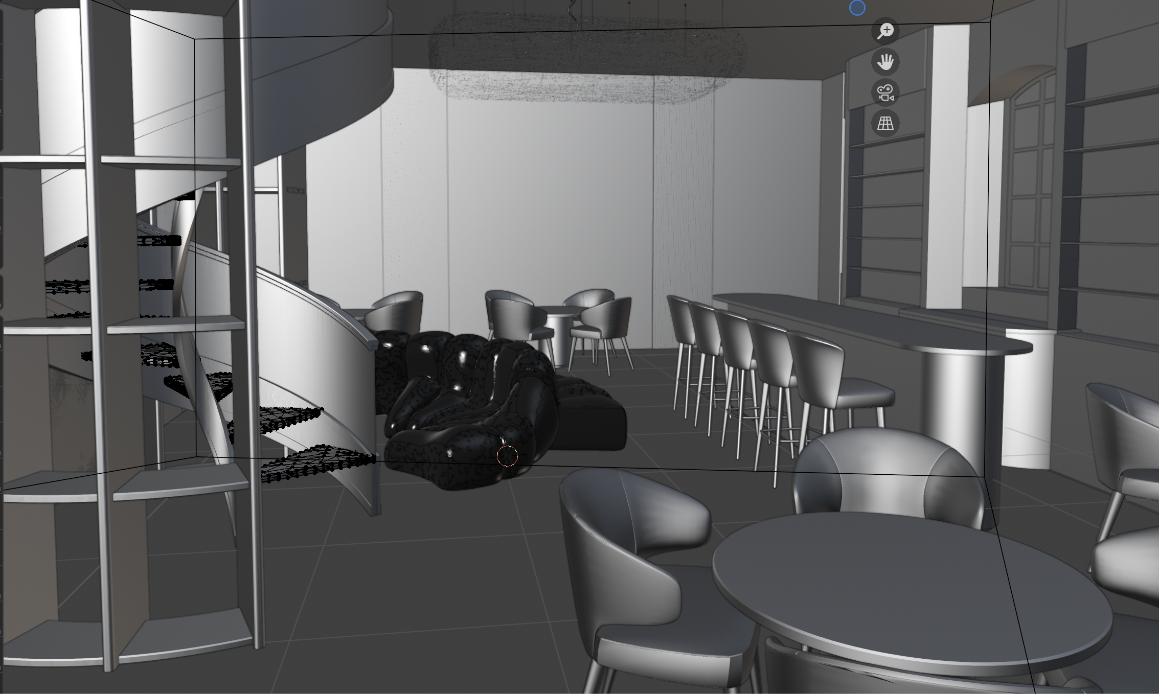 colonial revival exterior shot it is a bar i want the seats in white wool the legs of all chairs and stools in champagne color the bases of the tables and the counter in white oak caning the tops of the small tables and the bar counter in white taj mahal marble the sofa is white like the seat of the armchairs the floor is an italian herringbone oak parquet at 90 degrees the staircase has a glass balustrade with a high handrail and a low oak wood base like the floor the steps are in taj mahal marble the bookshelf visible at the entrance must be in oak include books and sculptures in the bookshelf put spherical lamps on the tables behind the counter place the bottles on the shelves the shelves have backlit onyx backs the back wall is white with two doors they are two rimadesio stripe doors made of wood architecture