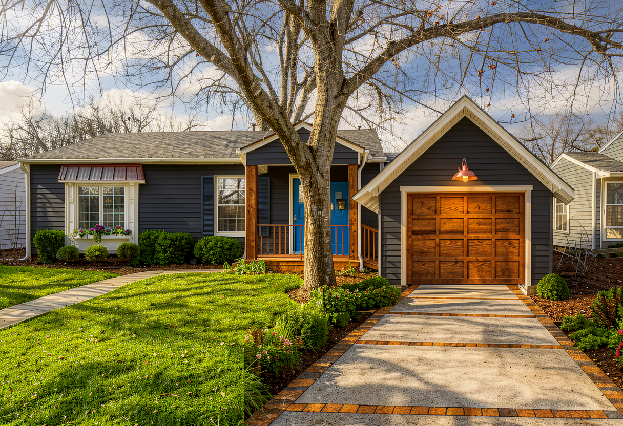 dark gray siding same blue over door keep red door