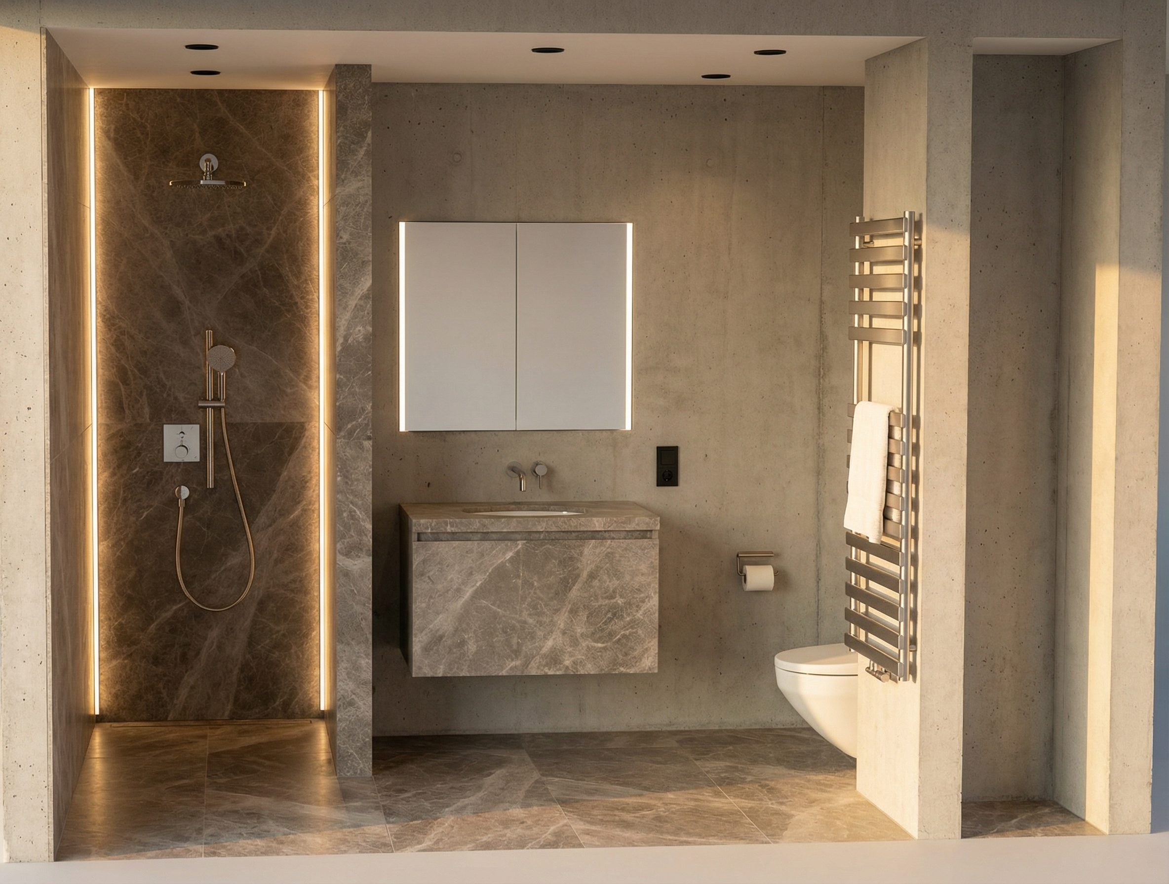 the buildings should be made of reinforced concrete the green surfaces should include low planting and there should be people walking around the area through the windows people and tables and on the second floor bedrooms the blue surface is intended to be a metallic surface made of multicolored threads on the right building in the front add tables outside