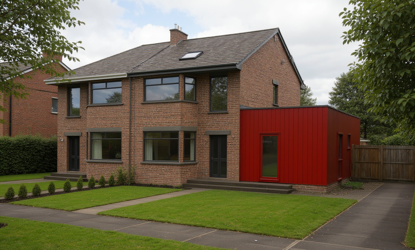 merge them into a signle building and the common corner is the right one for the left view and the left for the right view