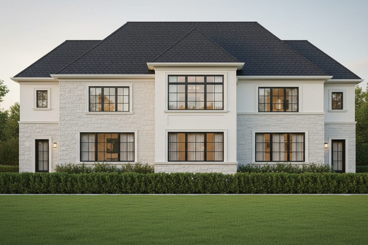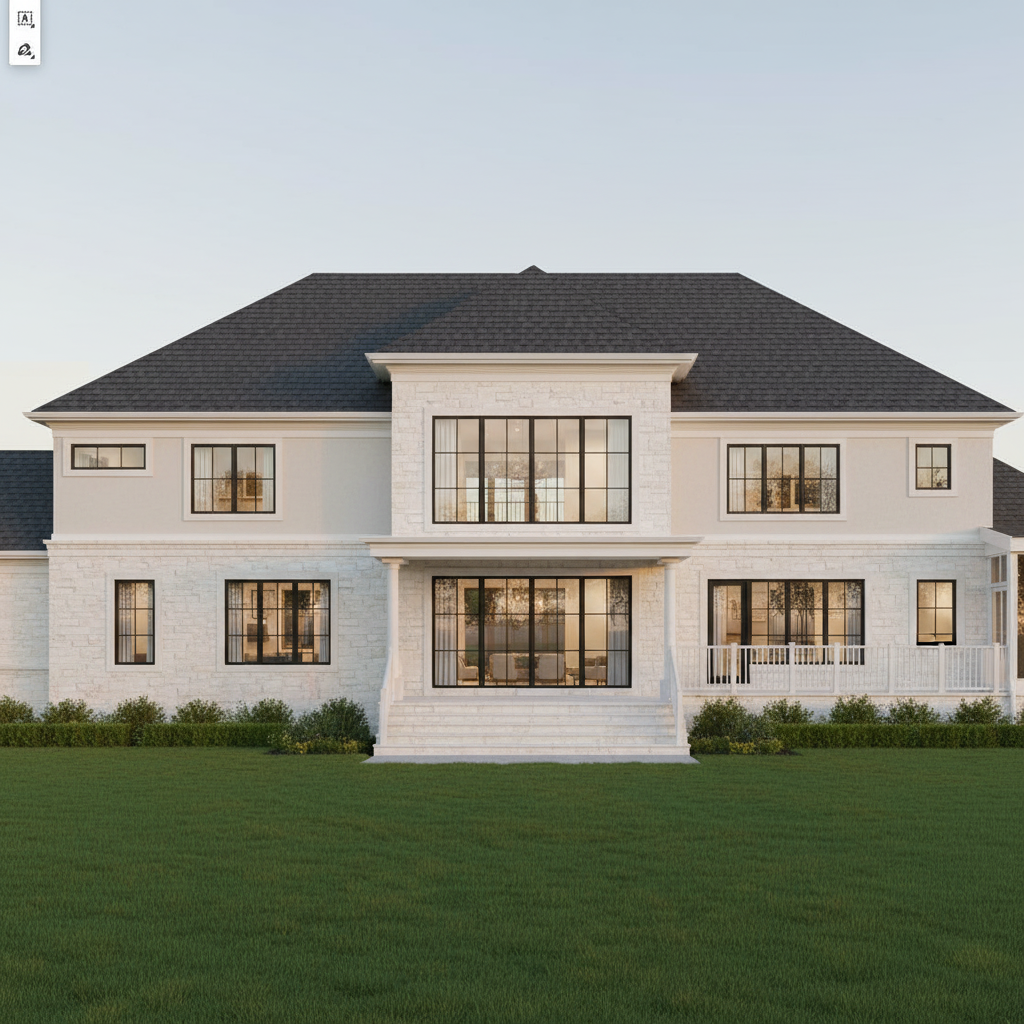 keep everything the same do not change anything on the house create 2 minimalist courtyards with seating no flowers do not add fences or dividers