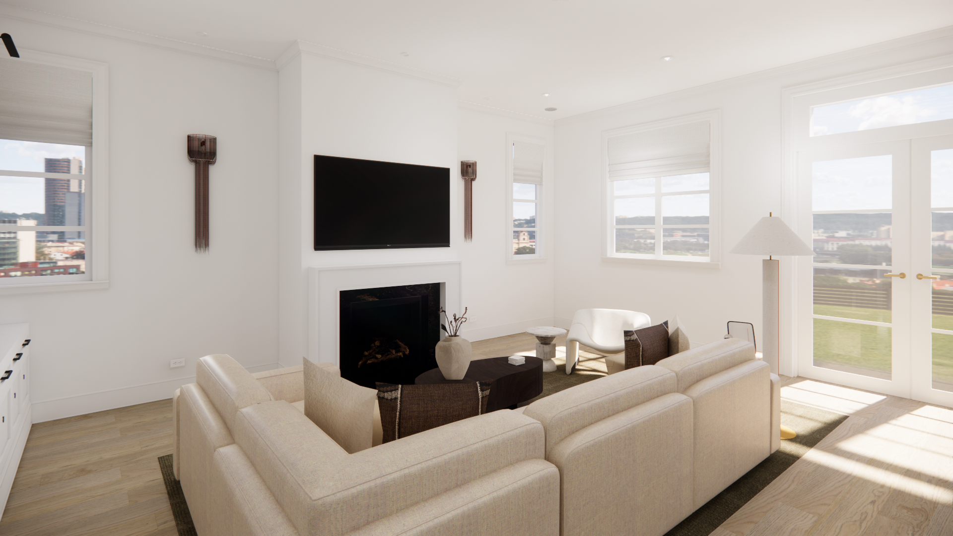 enhance this render to look more realistic improve lighting shadows reflections and material realism but do not add remove or alter any elements objects or materials keep everything exactly the same just make it more photorealistic