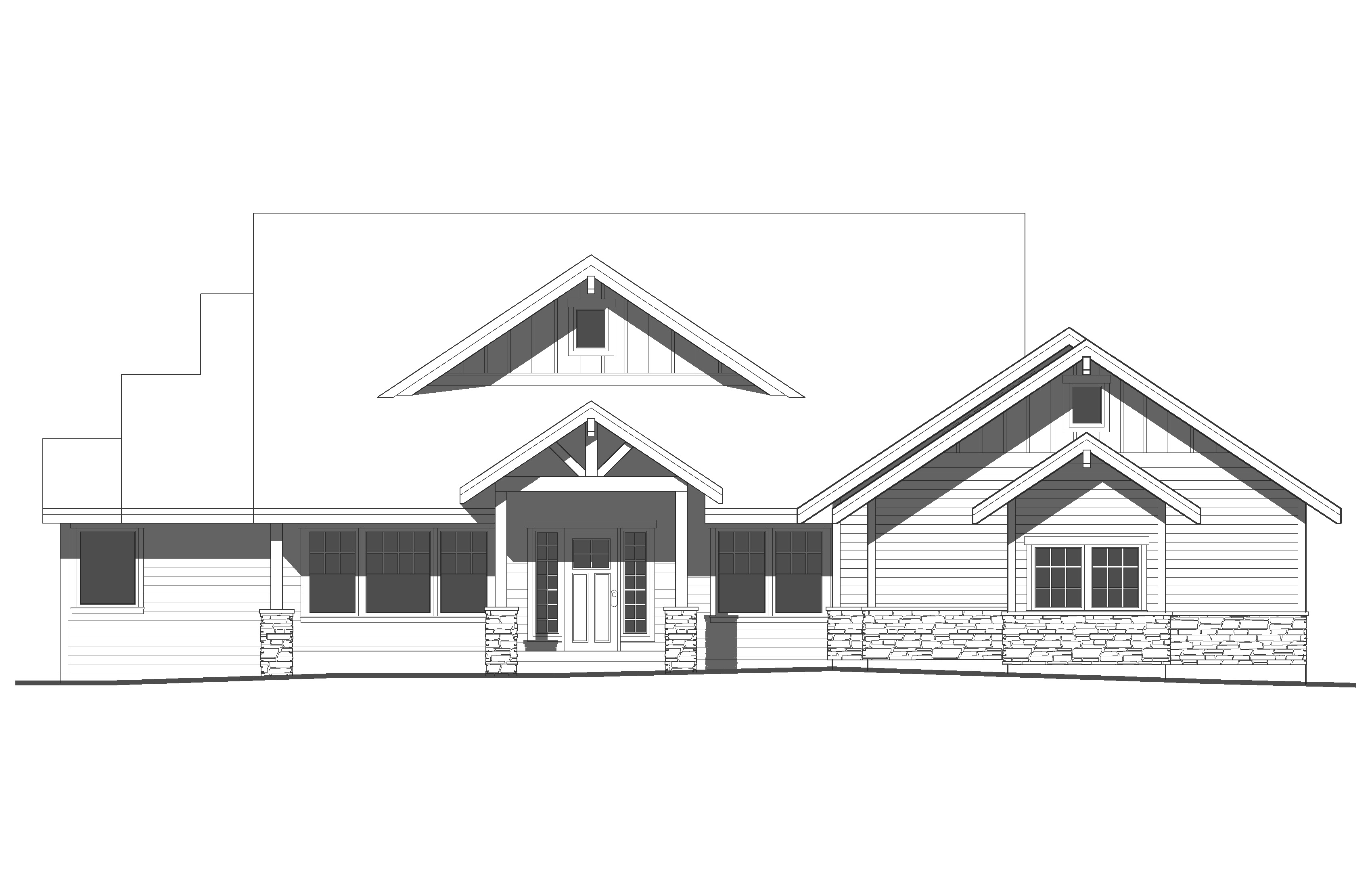 add warm gray color texture shade and shadows add moderate landscaping in a photorealistic north idaho setting black windows black comp shingle roof