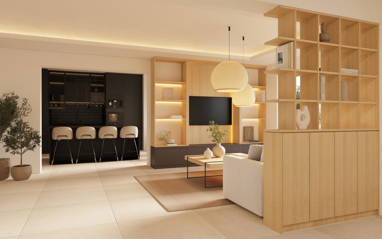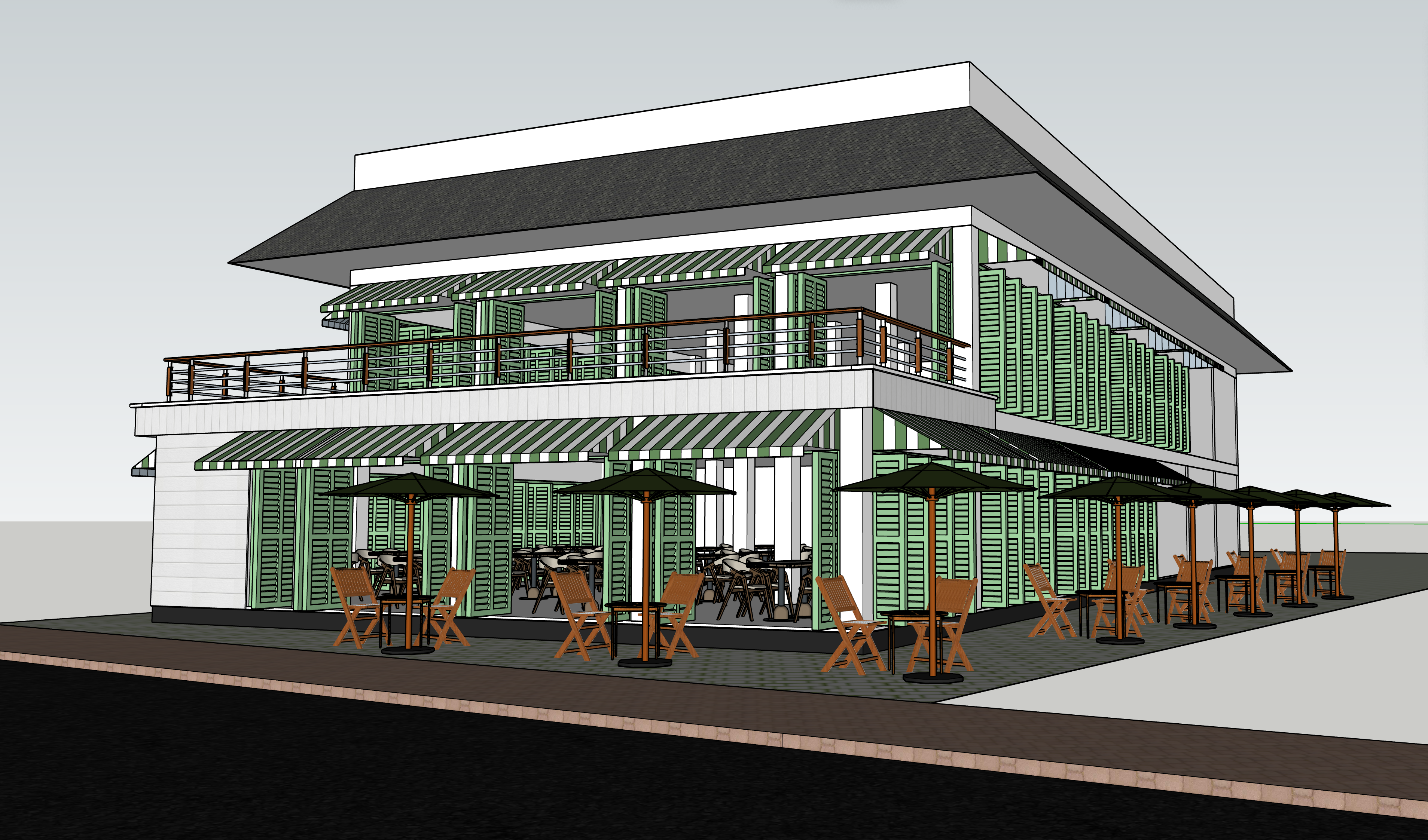 render the raw 3d architectural drawing into a realistic eye level perspective the project is located in a hillside neighborhood of labuan bajo facing the sea in front of the building show a small local road with pedestrian activity blending naturally into the neighborhood setting behind the building depict the back of the hill with dense tropical vegetation and rocky textures suggesting a natural cliff terrain surround the site with neighboring houses to convey a coastal residential atmosphere highlight warm tropical lighting realistic material finishes and the calm sea horizon to evoke the character of labuan bajo s hillside environment