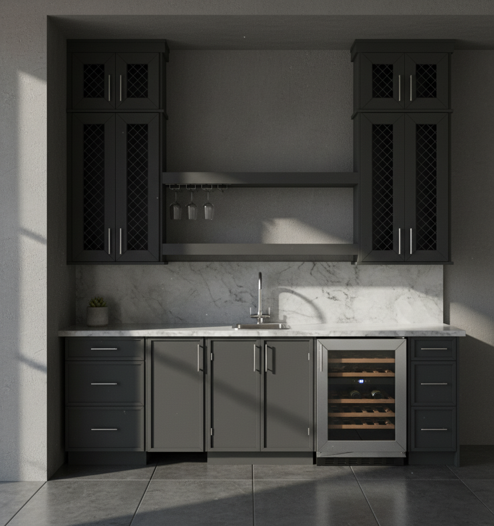 stage the shelves with food and baskets stage the countertop with containers for baking natural daylight
