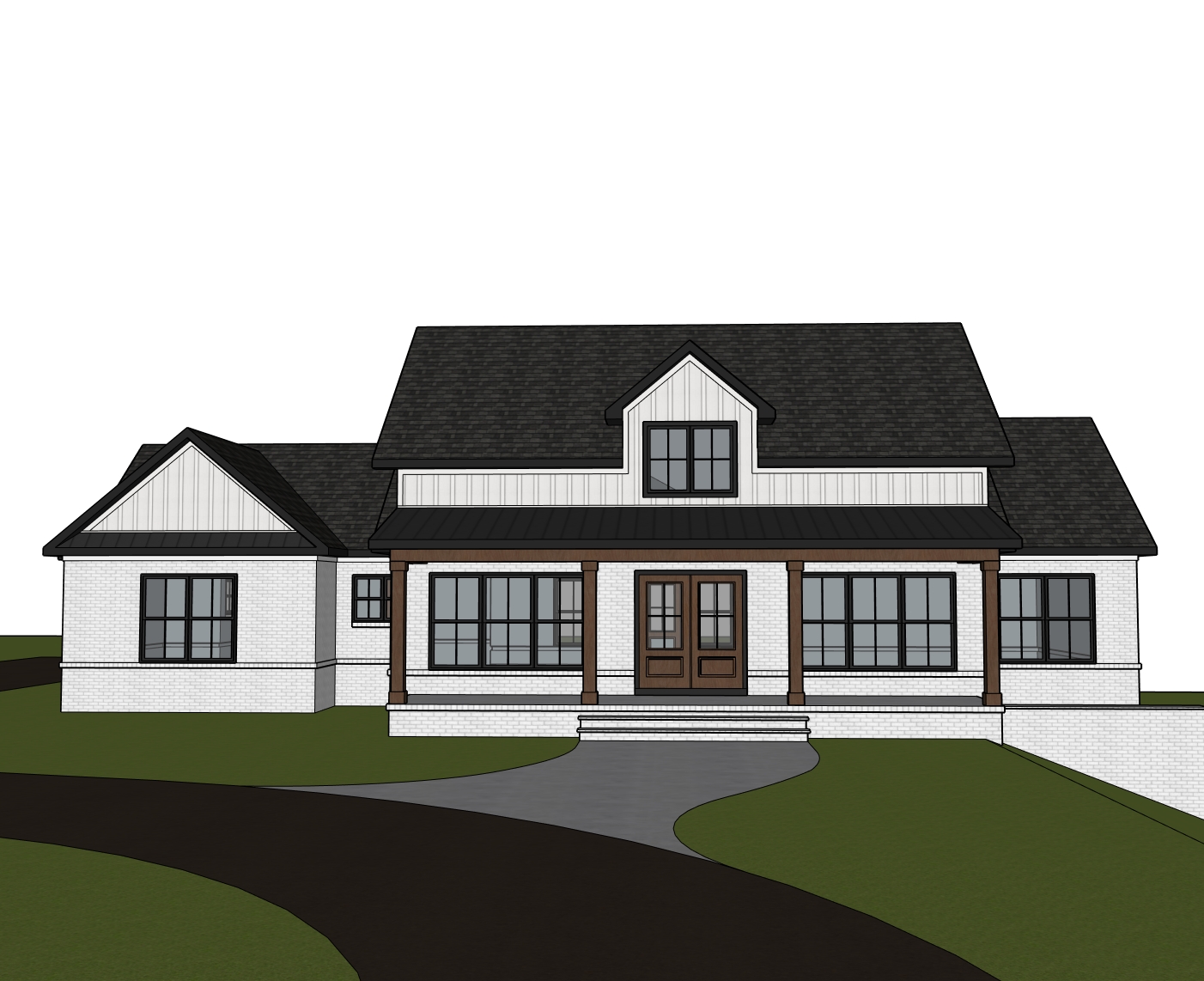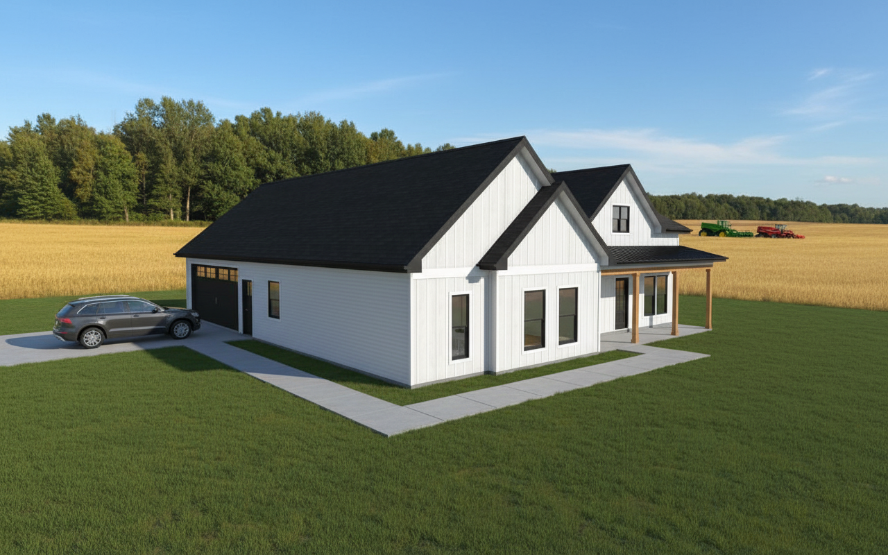add landscaping add trees in large open land maintain materials and colors make realistic