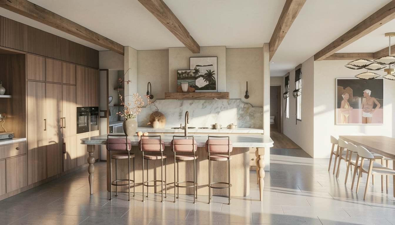 improve the realism of the provided interior render while strictly preserving the original composition and architectural intent strict rules must follow do not change camera framing proportions or geometry do not add remove or redesign any elements do not introduce any new light sources do not add led strips hidden lighting cove lighting or glowing ceilings the result must be based only on the provided image material and color specifications walls light white plaster subtle texture matte finish floor natural oak wood flooring warm tone realistic grain and subtle imperfections right side cabinets chalk painted finish matte wall panels around the bench same chalk color as cabinets bench seat light grey upholstered fabric soft texture realistic shading wall hooks natural oak wood doors light white matte finish door handles brushed stainless steel light switch light white next to the door power socket light white near the floor lighting very important use only artificial lighting from ceiling downlights recessed spotlights light must clearly originate from downlights above no led strips no indirect ceiling glow no hidden lighting light should fall naturally onto walls doors bench and cabinets create realistic light cones and soft falloff from downlights temperature neutral warm 3000 3500k add realistic shadows especially under the bench in corners around door frames subtle ambient occlusion and contact shadows required rendering quality enhance global illumination and indirect bounce light add micro imperfections and realistic material response pbr keep the scene minimal and clean no stylization or extra effects goal achieve a physically believable hallway render lit only by ceiling downlights without any artificial or added lighting elements while staying fully faithful to the original image