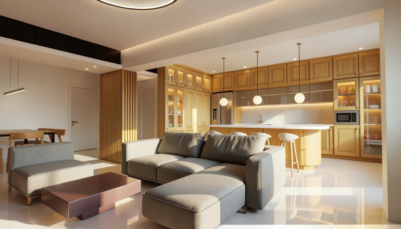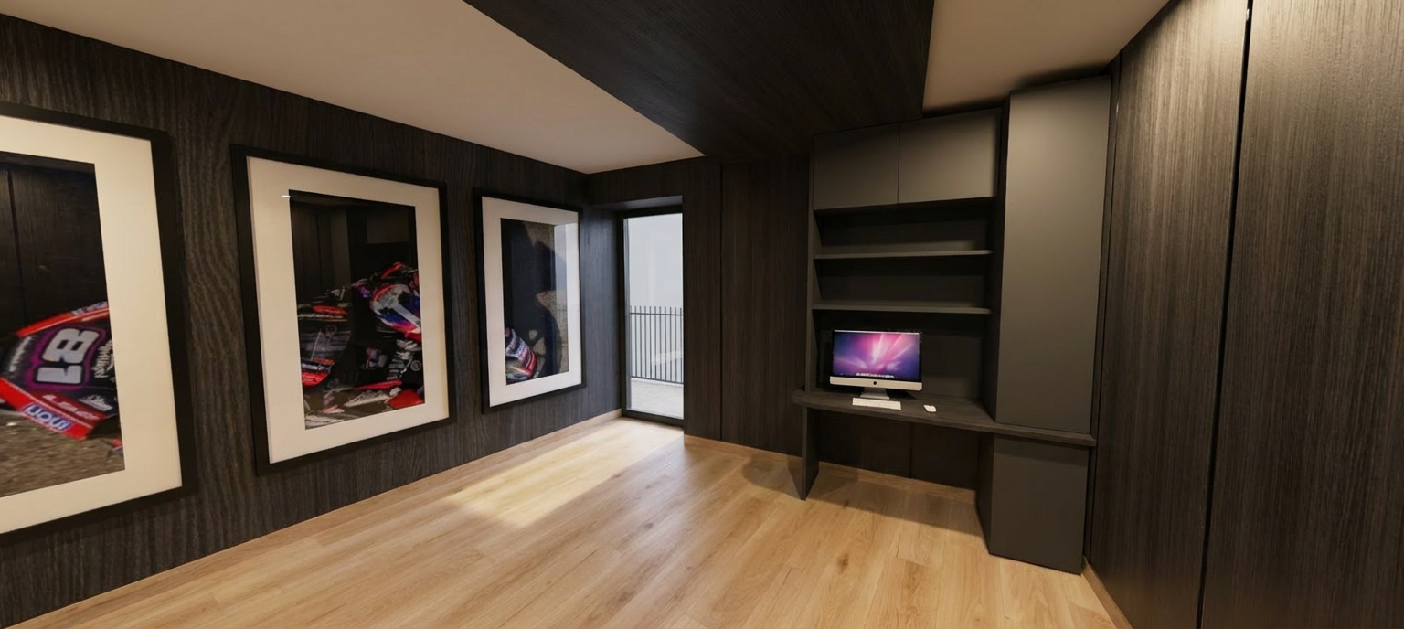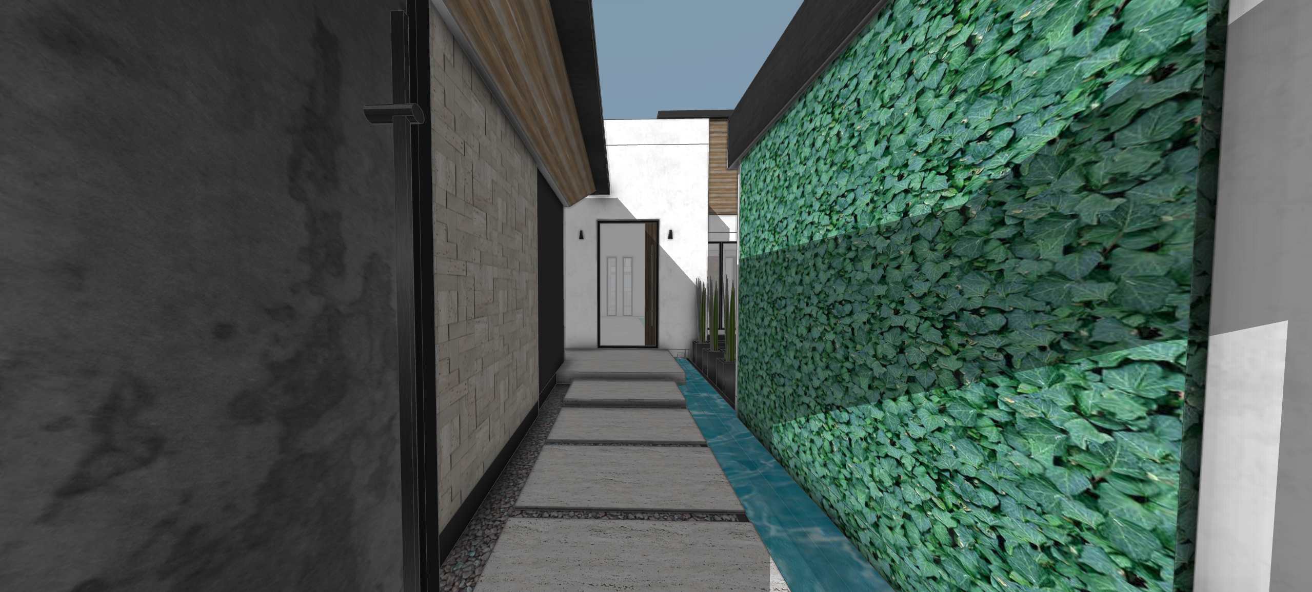 make all existing textures look more realistic with a live wall on right and blue water feature at dusk daylight