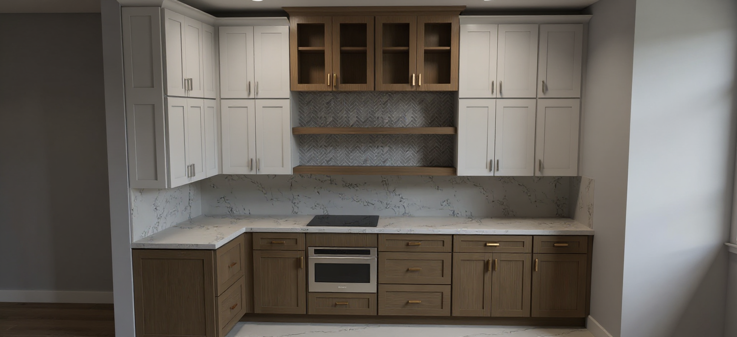 show a light grey standing seam metal roof dark grey corbels dark grey banding around windows and garage doors there are 2 dark grey bahama shutters above the entry windows the entry doors are 2 panels each and painted dark grey with no glass the garage doors are light grey the base house is smooth finish stucco painted white dark grey dappled paver sidewalk with 4 steps on the left side of the garage there are no exterior lights on this house tropical landscape with blue sky and fair weather clouds