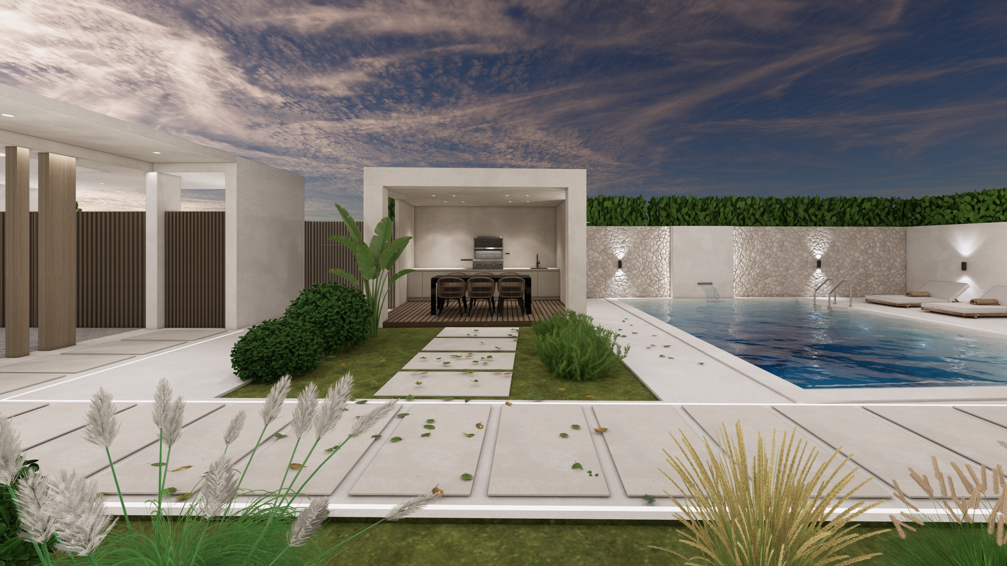 modernist exterior shot keep everything as it is just make my the grass more realistic as a texture only the grass architecture