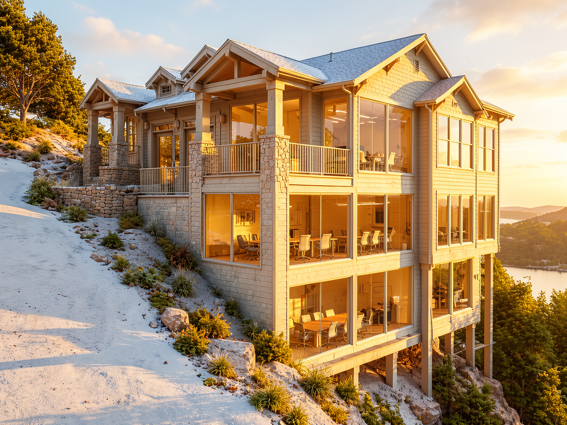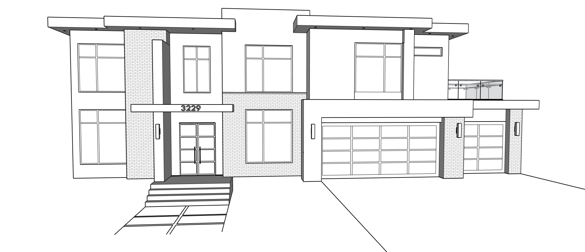 modern exterior shot black metal fascia black glass garage doors dark brick exterior dark grey stucco modern siding modern driveway with lush green grass and trees modern flowers architecture