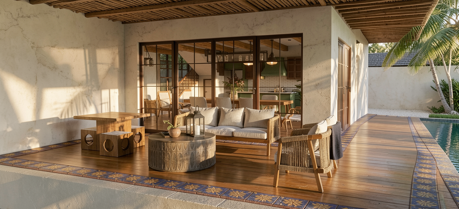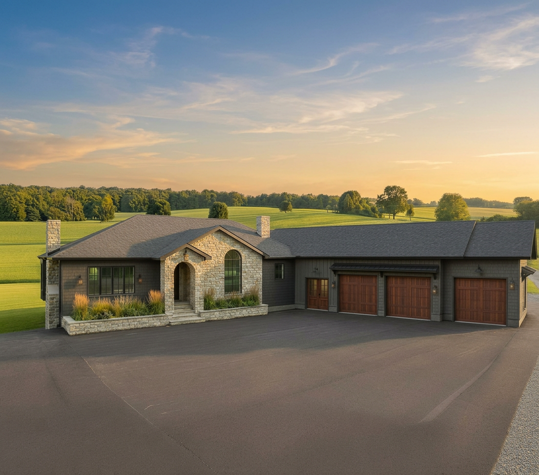 the edge of the stone entrance arch should curve down and meet the planter on the left hand side make the landscape an idyllic valley with wild grasses and trees