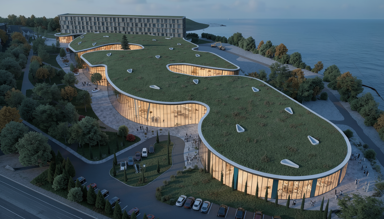 place a modern cabin with a walk out basement on the hillside