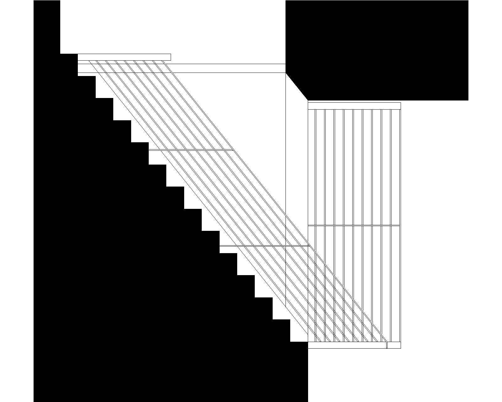 make a warm inviting rendering of this railing system in a stair way cut section railing system is all black